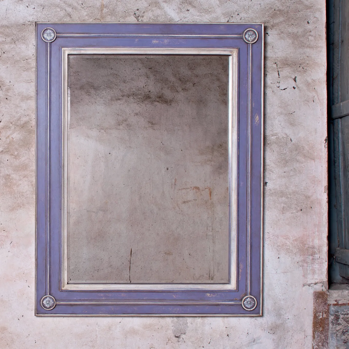 Handcrafted of wood and hand painted with an antiqued finish to enhance its 18th century Venetian style inspiration, this simple yet elegant design will complement any decor, brightening both a classic and modern interior. A carved inner frame accented at the corners with a delicate flower inside a circle stands out on the eye-catching cerulean color. Available with standard and antiqued mirror (shown), the size and color of this piece are fully customizable as per customer’s request. Ask the Concierge for pricing in the selected option.
