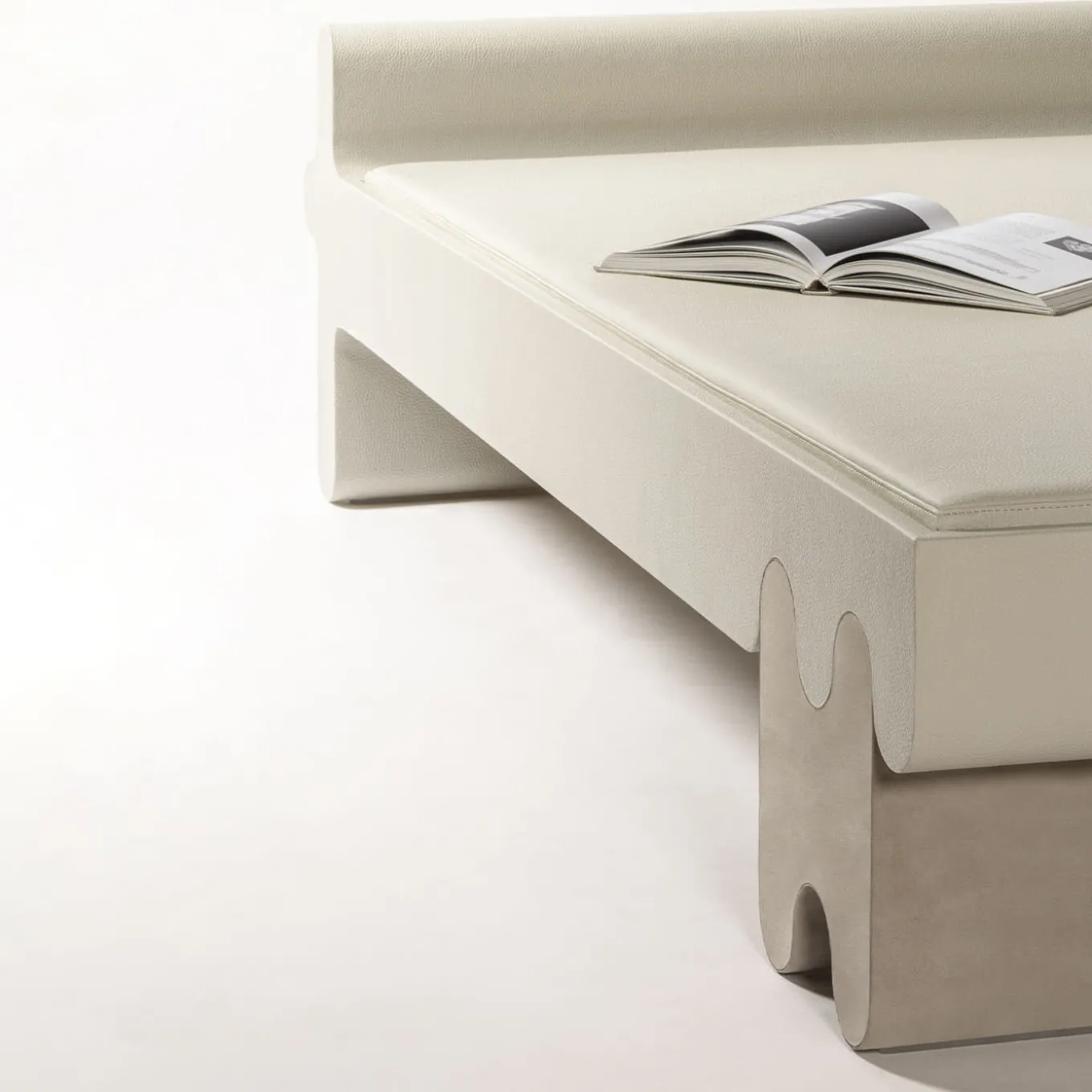 Ossicle is a collection that comprises monolithic seats, benches and tables crafted with a carefully selected range of leather and marble colors and finishes. Their monumental volumes originate from both primal monolithic and contemporary minimal features entwined, while the lines are a reference to the “Jeu des Osselets”, which has roots dating back to ancient Greece and Rome, reinterpreting it according to a modern visual and sharp humor, balancing organic and pure geometric shapes.