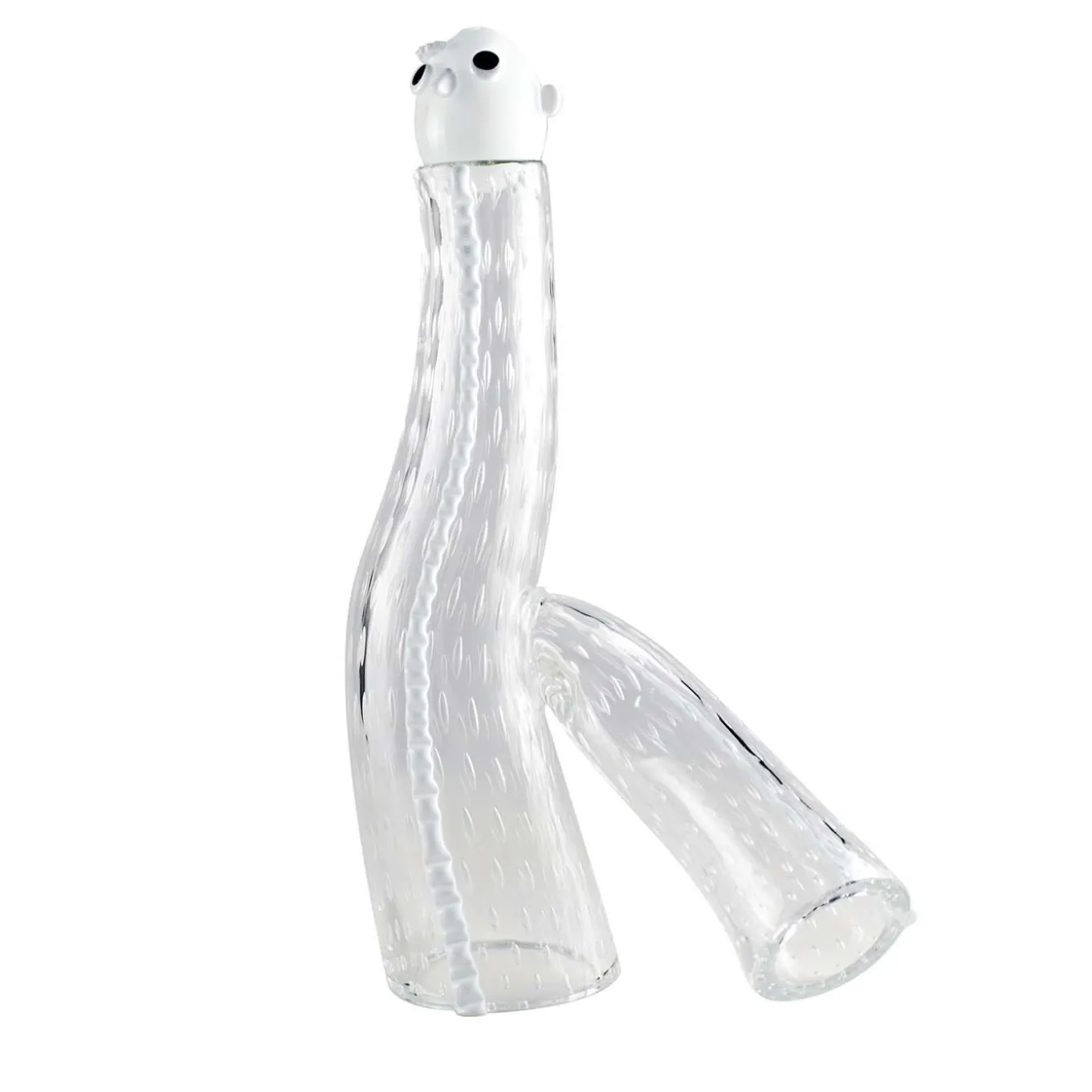 Whimsical in expression, Otto is a masterpiece of Venetian glass tradition. Featuring a sinuous body crafted using baloton air-trapping techniques, Otto appears to be going out for a casual stroll. The piece is topped with a white head, tilted slightly to the side, lending a quizzical expression. A true collector’s item.