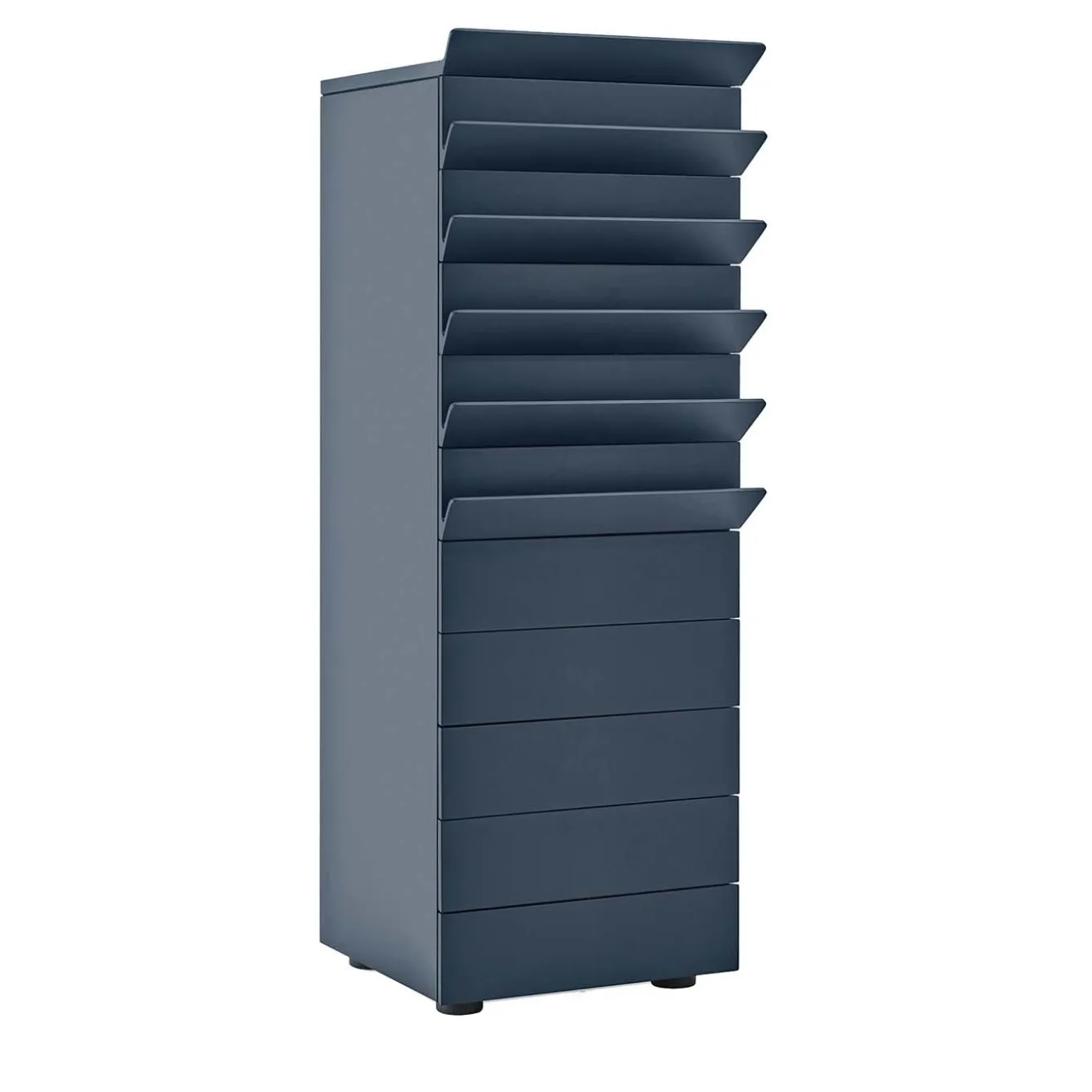 This totem-like structure was designed by Lorenzo Damiani as part of the Overlooking collection, a series of solid Canaletto walnut pieces whose shape evokes the concept of a home, with the internal space containing everyday necessities, and the sculptural elements of the handle, with their protruding diagonal silhouettes, as balconies. Sophisticated and modern, this piece can be combined with the others in the same collection for a striking effect.