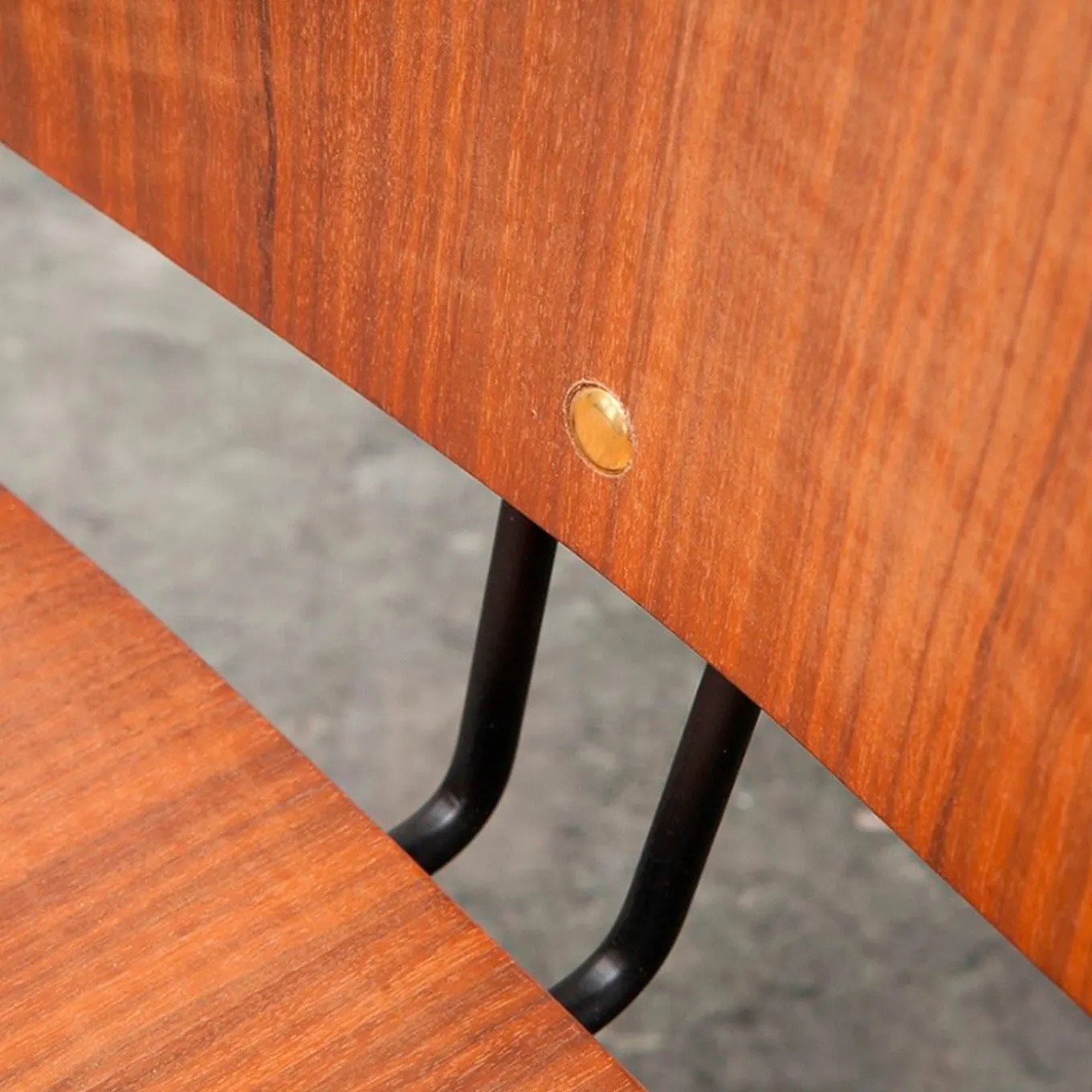 Part of “ABV Collection”, this chair, designed in 1957, exemplifies Osvaldo Borsani’s predilection for clean designs with a secret detail that makes them exceptional. The soft-contoured wooden seat is sustained by a tripod base where each leg is composed of two thin steel tubes, the same black-painted structure repeated as support for the backrest. Easy to disassemble and fold away, this chair was disruptive at the time of its debut and remains so since it provides smart seating with minimum effort.