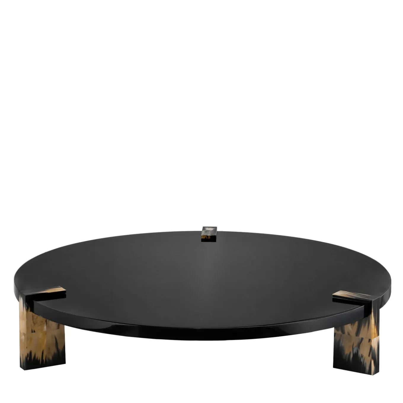Making a grand statement of luxury and elegance, the stunning Paestum Low Coffee Table is crafted in a polished black lacquered wood and features dark horn feet. At 31 cm in height, it has a diameter of 160 cm and makes a fine addition to a contemporary and formal lounge area.