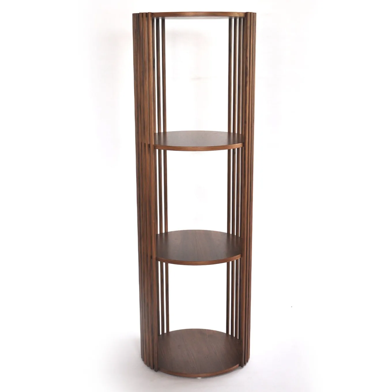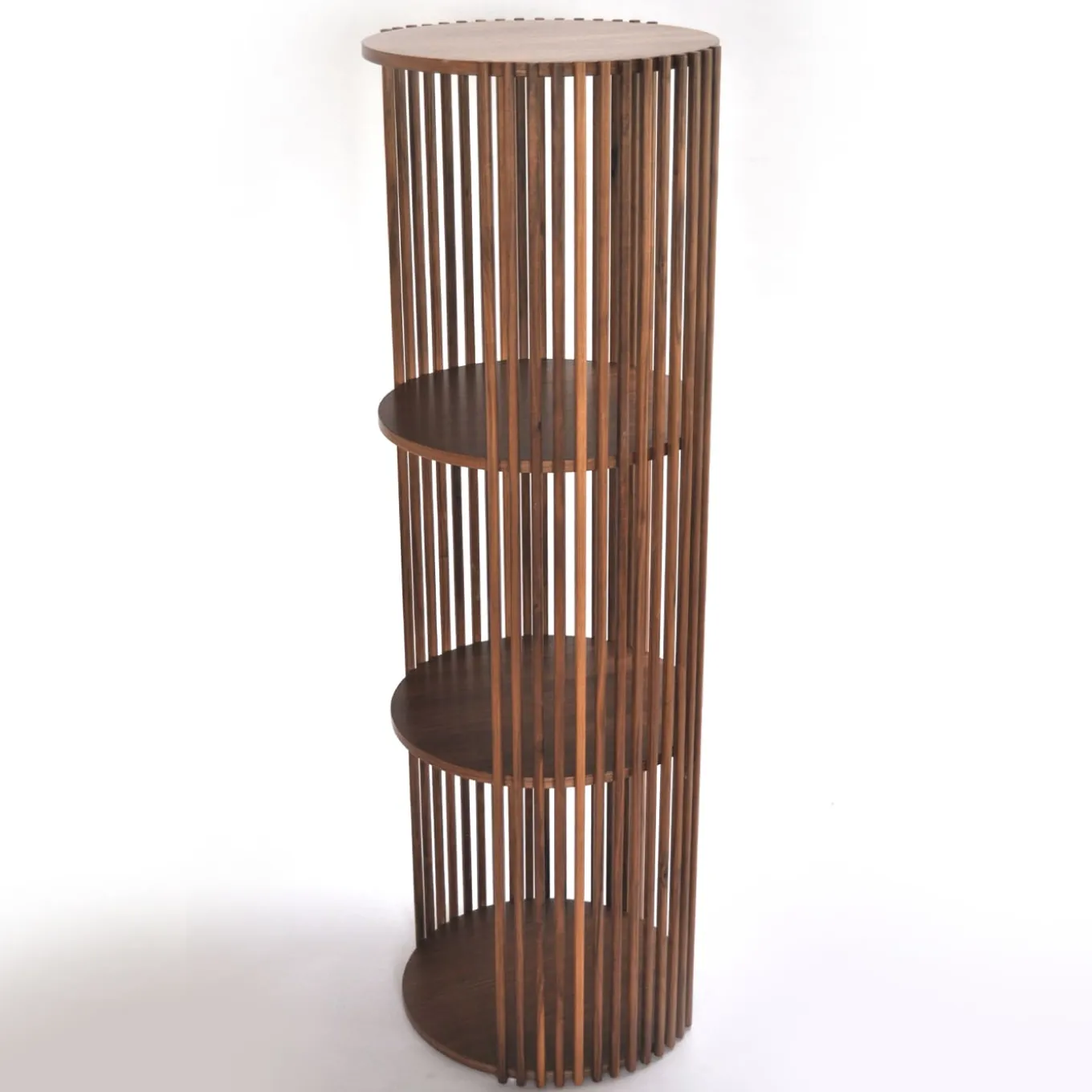 An intriguing game of balance, this gorgeous bookcase or étagère will make a stately and captivating addition to a contemporary interior. It features four round shelves in veneered Canaletto walnut wood, supported with thin yet robust slats of solid wood. Also available in durmast or lacquered wood upon request, please ask the Concierge for details and price variations.