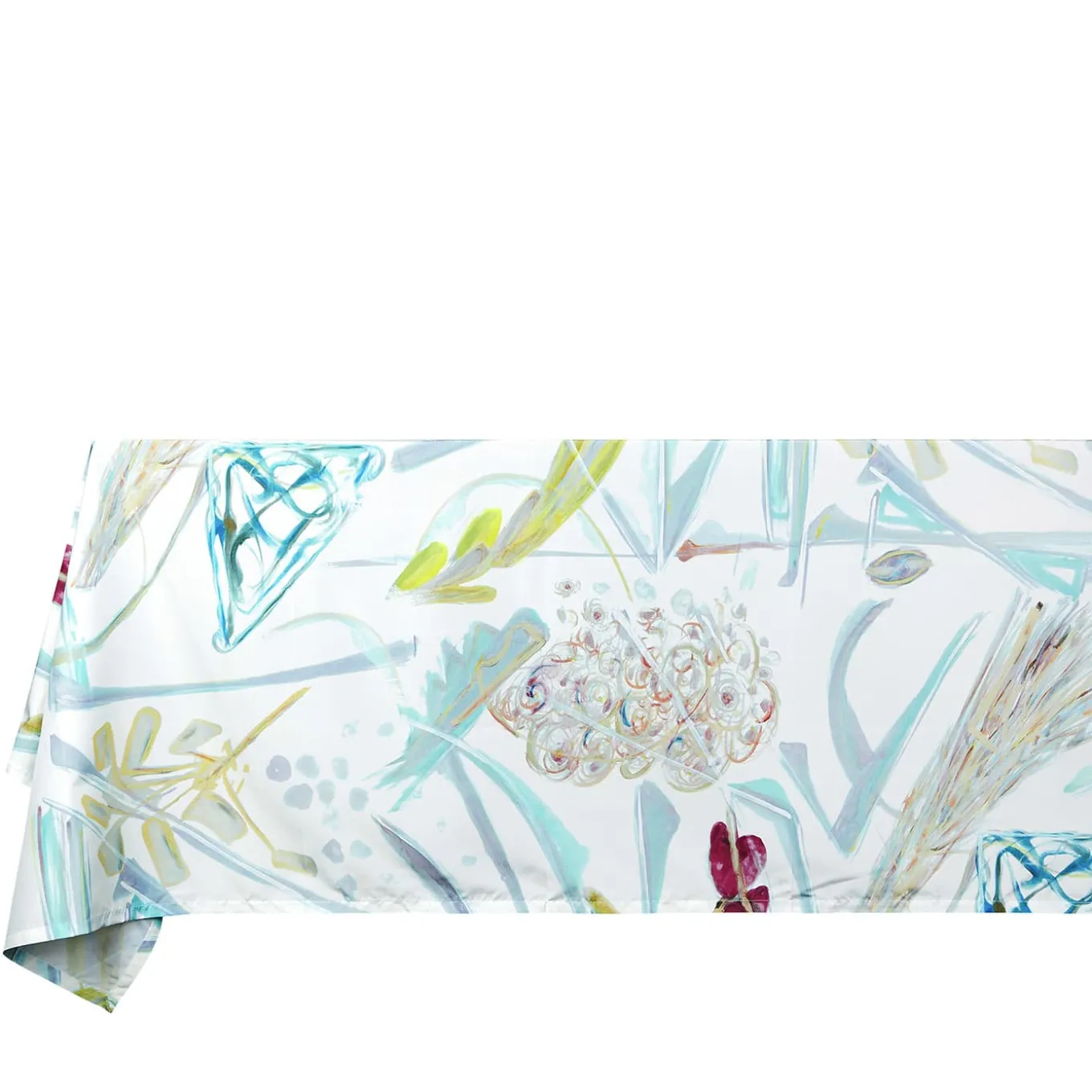 A romantic nature-inspired digital print impressed on this silky polyester taffeta tablecloth is a faithful reproduction of an original painting that artist Luisa Longo painted using metallic and acrylic colors. Meals are sure to gain exceptional poetry with the unfurling of this refined piece. Please refer to the Concierge for pricing of the 220x280cm variant.
