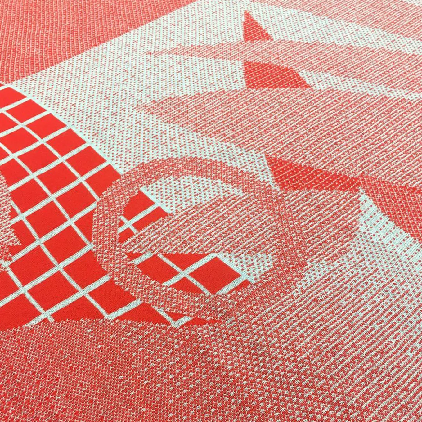 Designer Serena Confalonieri was inspired by real life stories in creating this 100% Merino wool throw blanket that can double as a tapestry. Depicting a sort of abstract pool scene, this blanket features shades of red blending together in jacquard weaving for a lovely piece that can be collected or snuggled under.