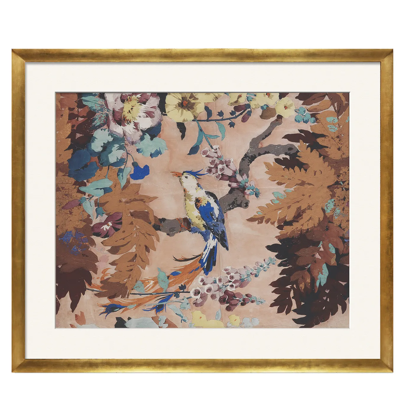 Pale pink Print with white passe-partout and frame in gold finishing.