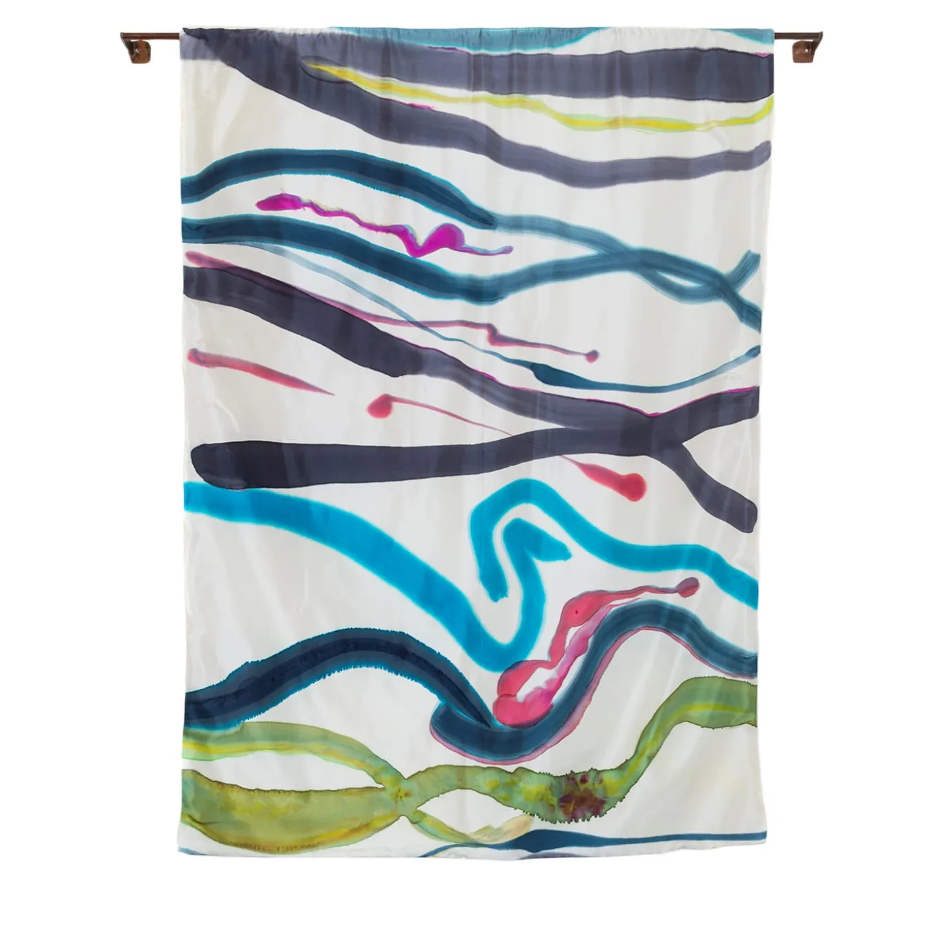 Richly hued and smoothly textured, this singular artwork will add a vivacious and colorful artistic element to any interior. Entirely painted by hand with metallic and iridescent acrylic colors on organza silk, it features clean and soft, yet decisive brushstrokes of abstract nature. Mounted on a wooden frame. Any slight variation from the pictured item is a testament to its handcrafted nature.