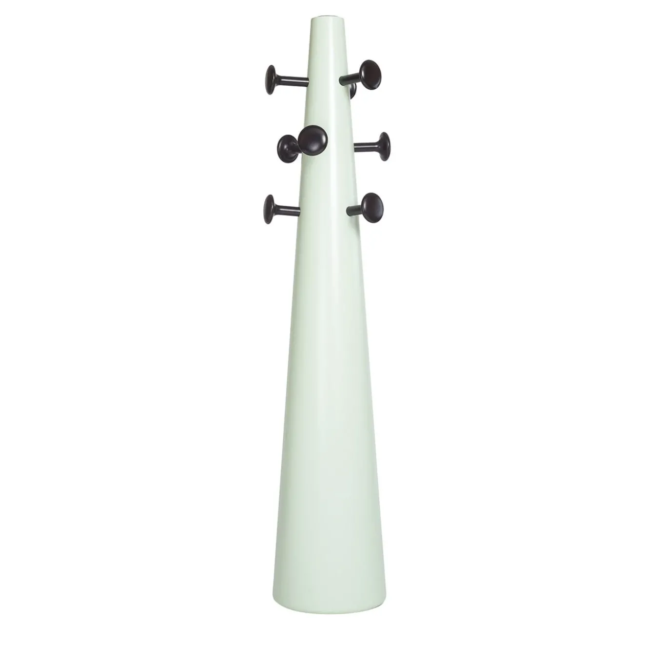 The Particella coat hanger retains the juxtaposition of momentum and gravity of its inlaid version while featuring a matt lacquered polyurethane body in new colors and matte black lacquered wood knobs. It is part of the New Atomic Age collection designed by Elena Salmistraro. The designer took inspiration from the historical period between the 1940s and 1960s. The collection reflects neo-tribal and post-atomic symbols through precious inlays and innovative resin carvings.