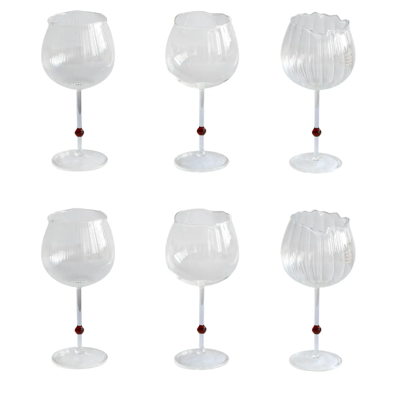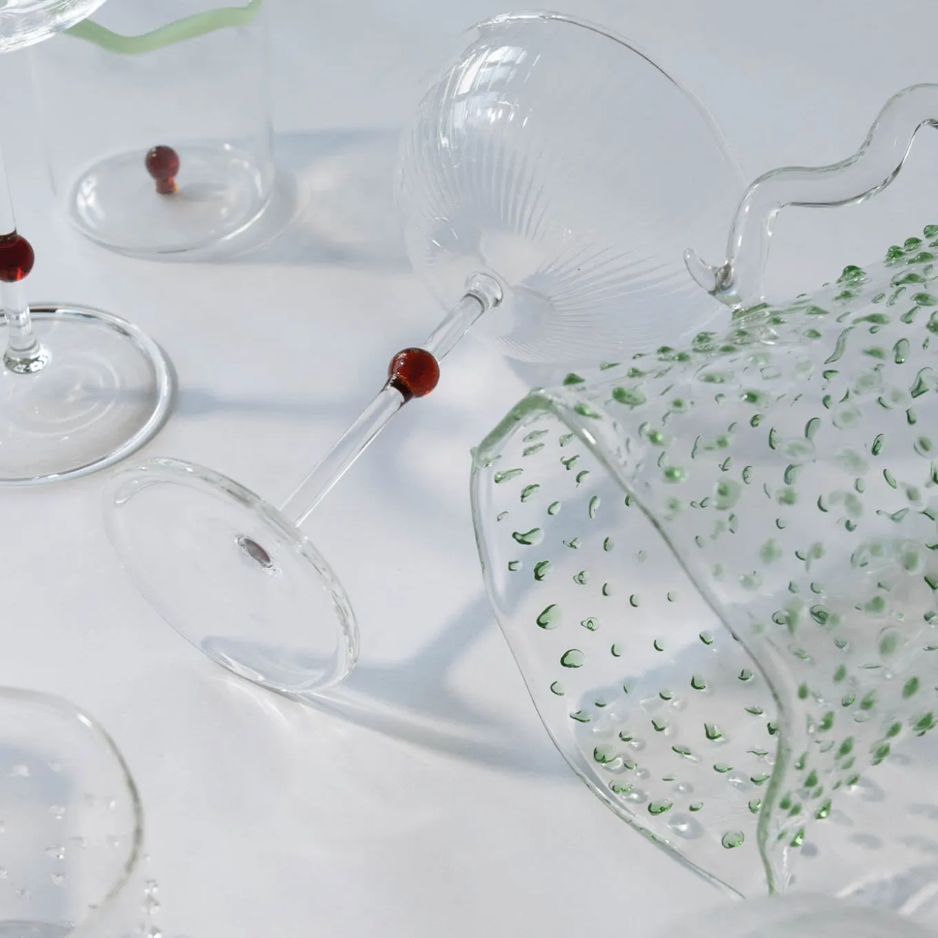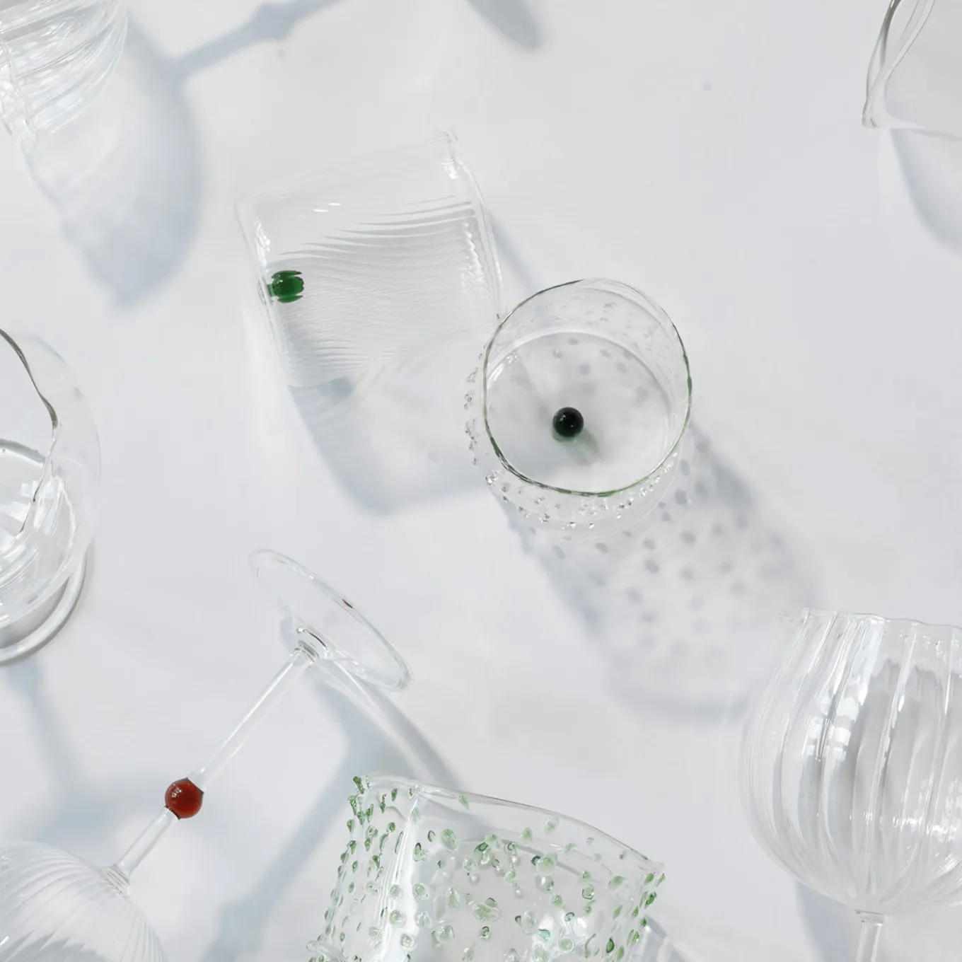 Fluid and organic like water, precious as a pearl. Each piece is meticulously handcrafted in Italy by master glassmakers using high-quality borosilicate glass. Resistant to thermal shocks, it allows for use with both hot and cold beverages. Each set comprises two smooth cups, two cups with bold lines, and two cups with a subtle oblique line. The pearl color is available in other shades, please ask the Concierge for further information and set options.