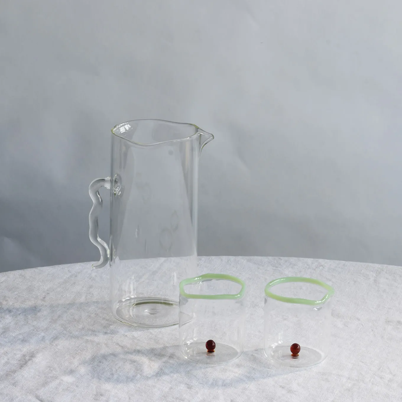 The sea serves as the guiding thread for the elegant Pearl line of this pitcher, characterized by delicate craftsmanship. Each piece is meticulously handcrafted in Italy by master glassmakers using high-quality borosilicate glass. Resistant to thermal shocks, it allows for the safe use of both hot and cold beverages. The Pearl pitcher is available in various finishes, please contact the Concierge for further information.