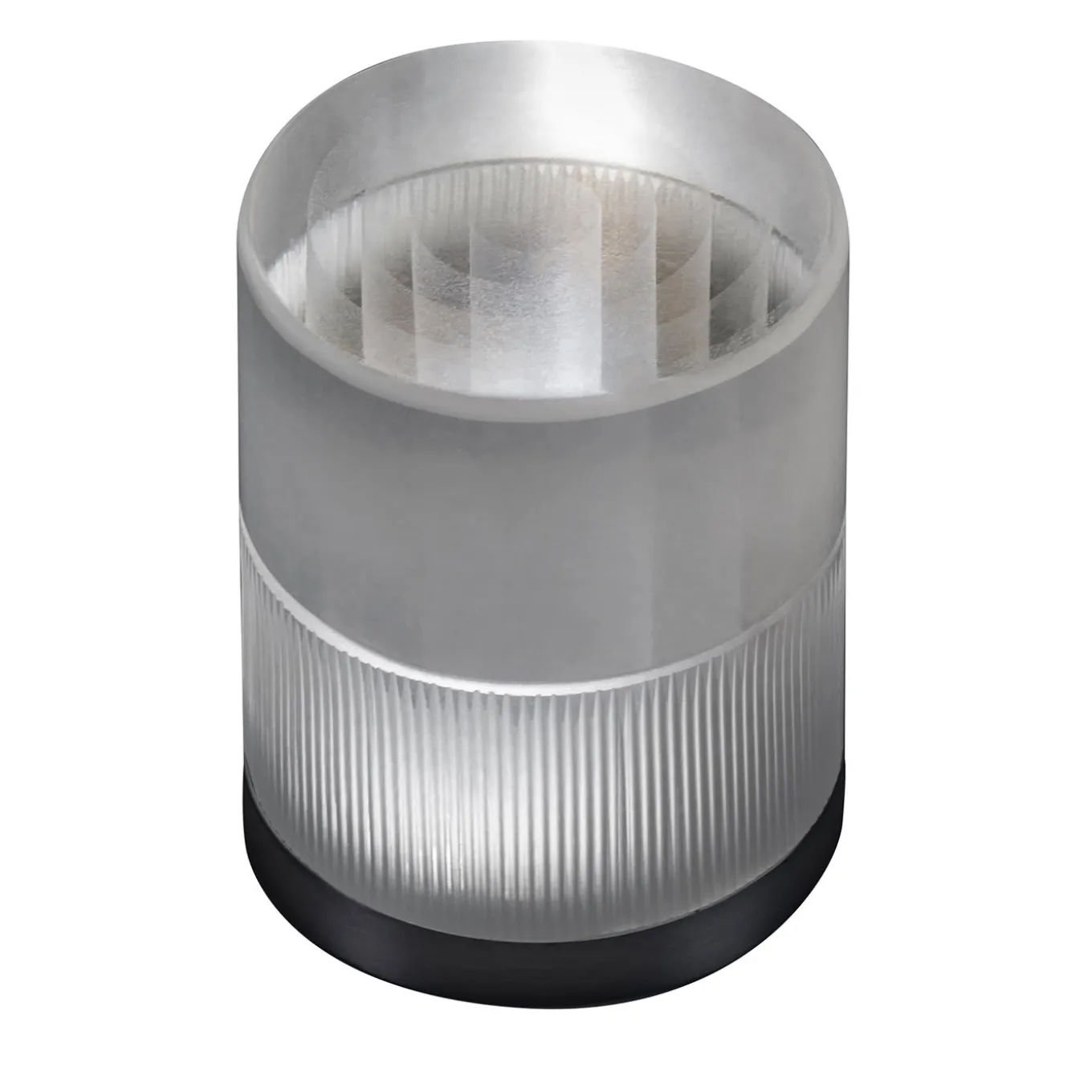 Small in size but big on style, this Murano glass table lamp designed by Milan-based designer Federico Peri is distinguished by special engravings on the glass. Part of the Incisioni Collection, it is available in crystal, smoke, rosé and features a brushed aluminum base and a cylindrical body, smooth on top and graciously pleated at the bottom. Illumination is provided by dimmable 1.4 W 85 lumens 3000° K, please contact the Concierge for additional technical specs.