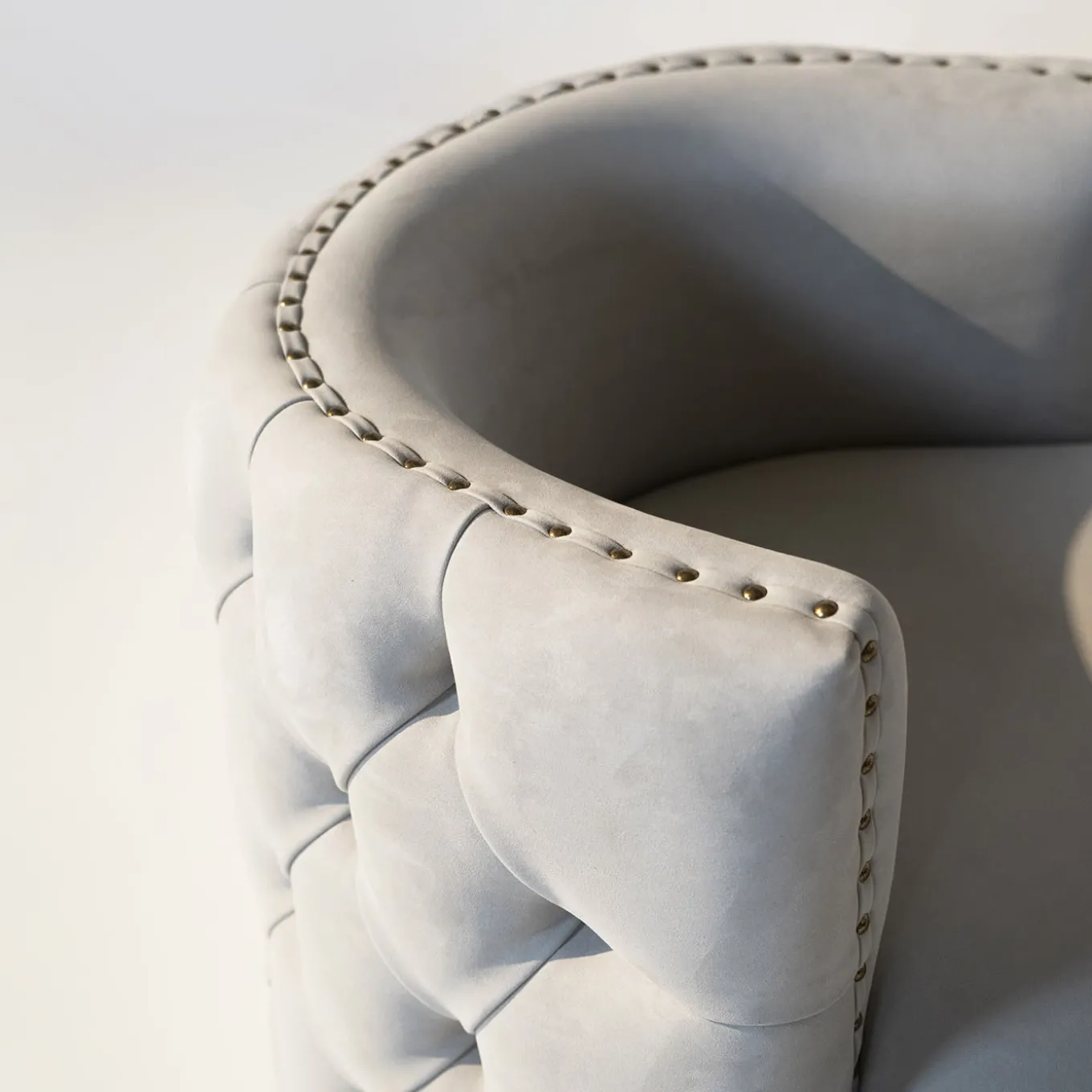 Petra is a graceful armchair with a rounded and welcoming shape, an object with a refined style that blends perfectly both with traditional and modern decor. The quilted capitonnè back embellishes this armchair and makes it an element of furniture of great value intended to last over time. The precious nails that finish the profile of the back denote the attention to detail, maintaining its refined aesthetic language and its enveloping line.