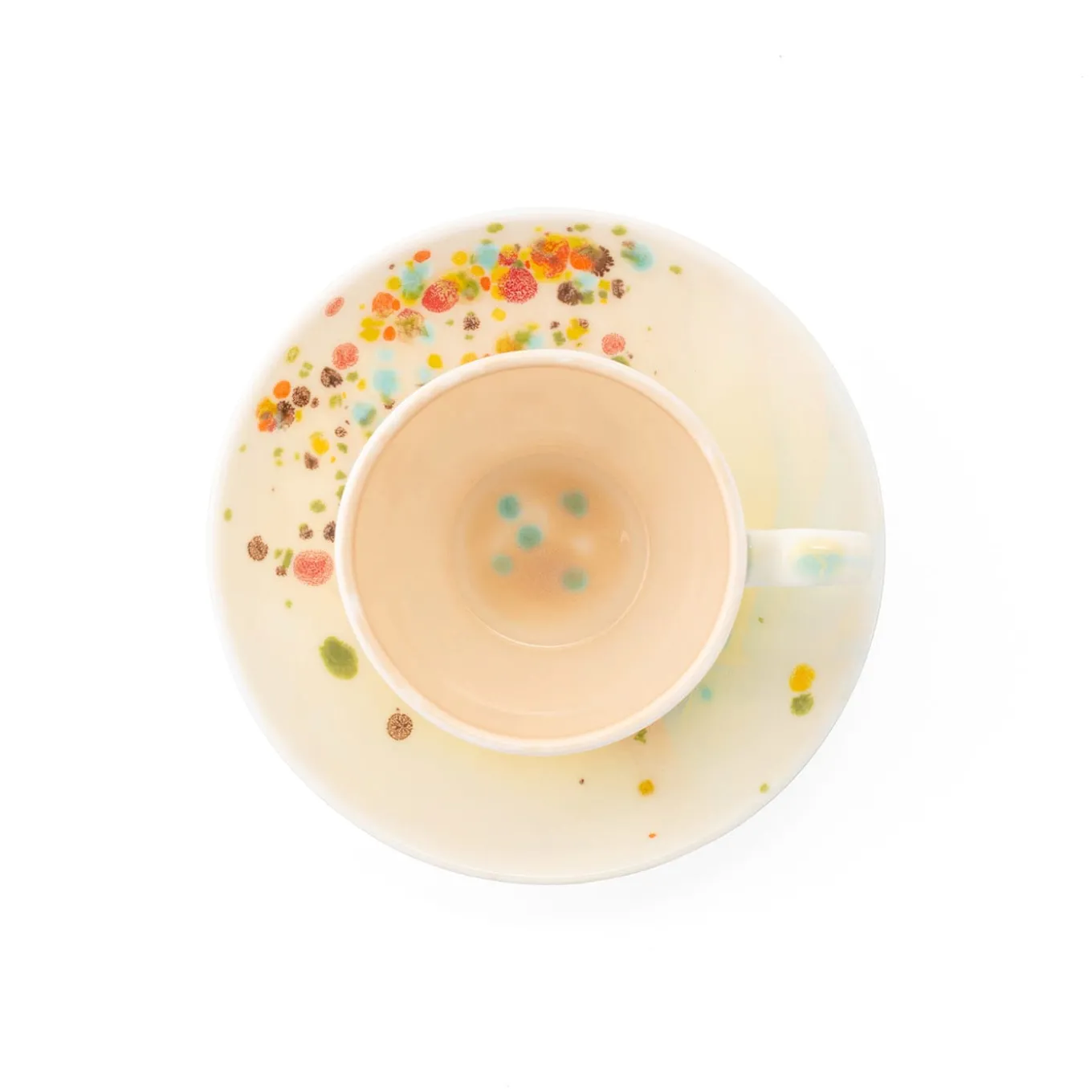 The Piazza del Popolo collection is named after a Roman landmark, and inspired by traditional Italian artisanal pottery yet decorated in a personal and elegant key. This Chestnut coffee cup and saucer has a multicolor dotted decoration shaped as a cascade while the inside is painted in a sandy color. Non-aggressive soap and delicate washing are recommended. Suitable for dishwashers and microwaves.