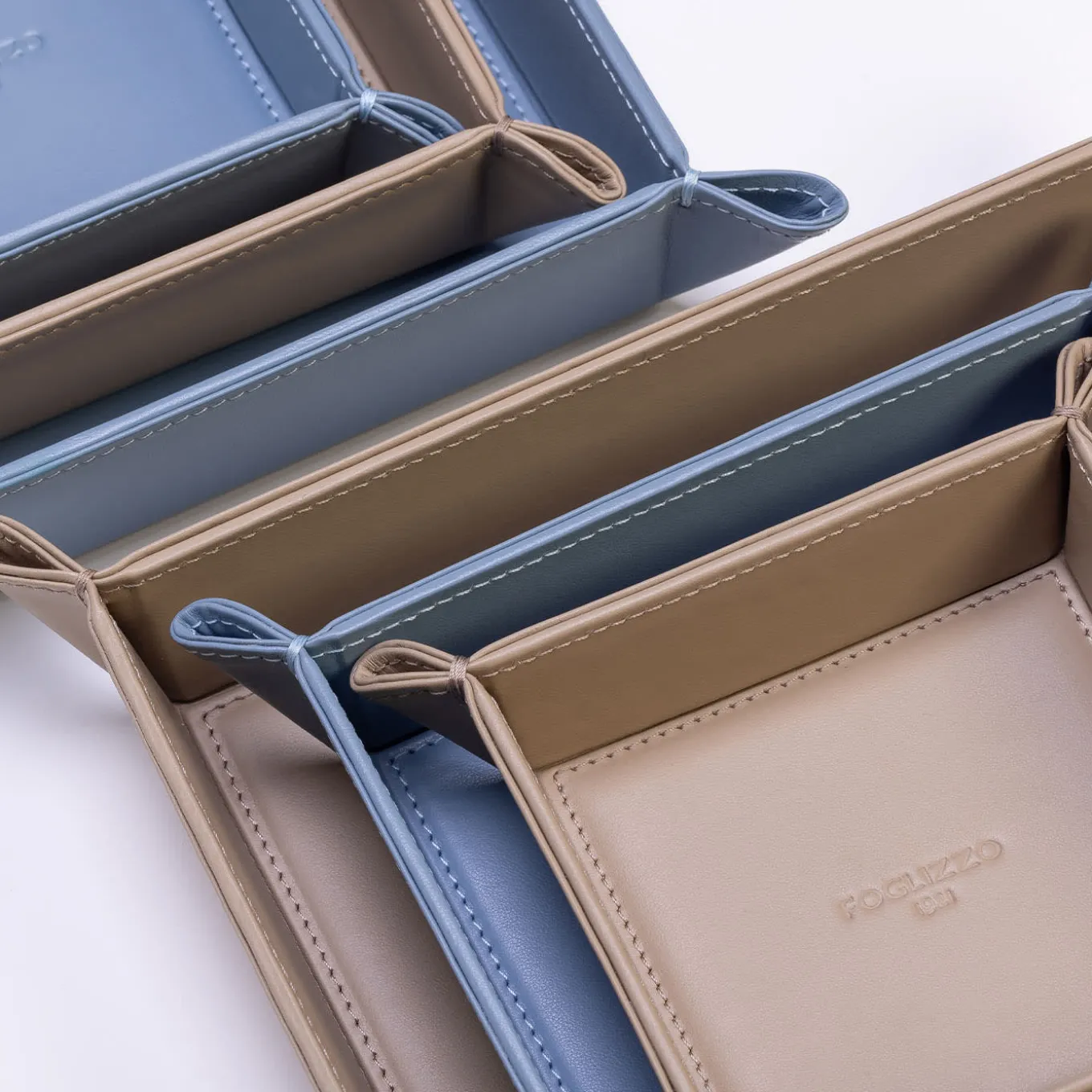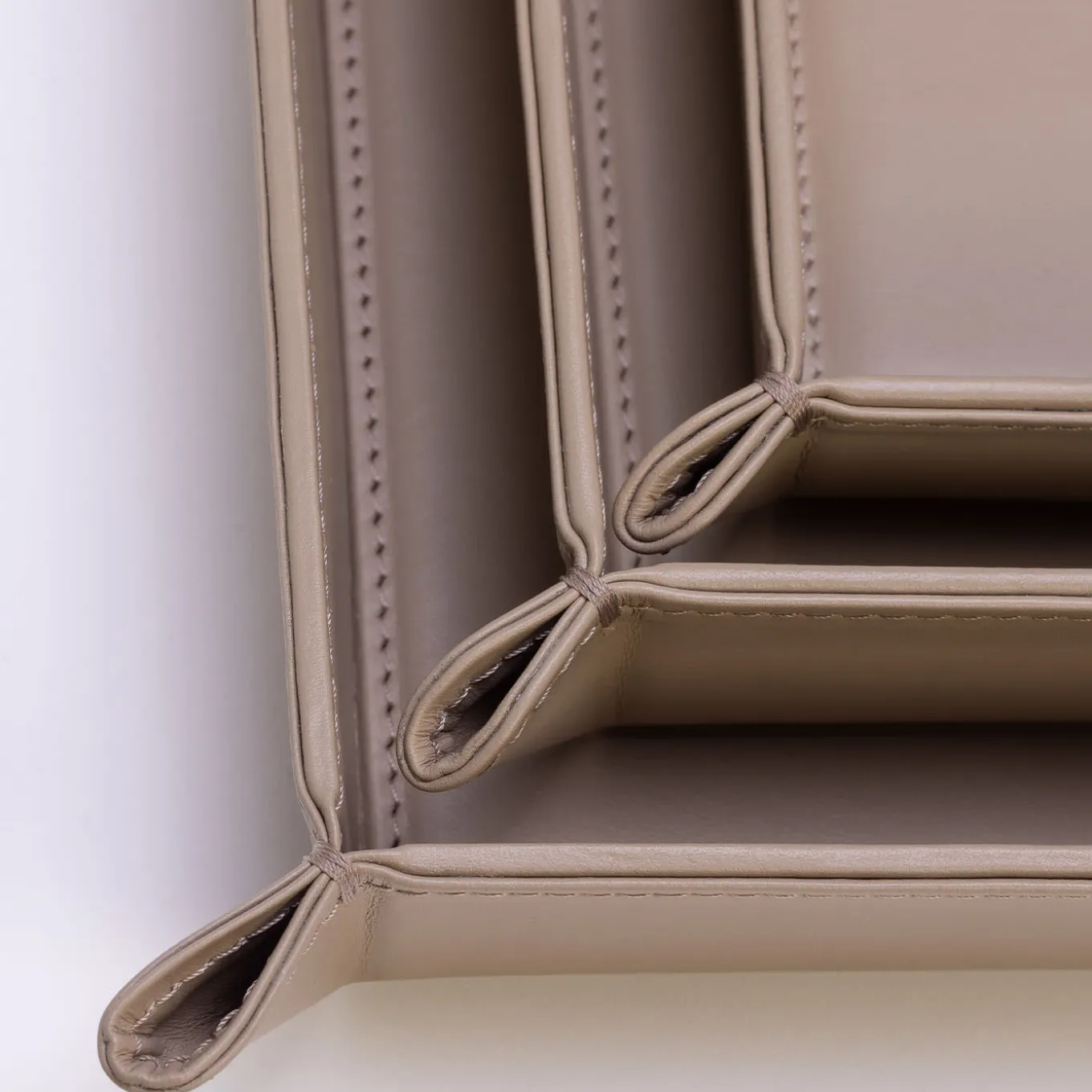 The versatile Picasso leather vide poches, expertly crafted in Foglizzo leather, embody an elegant sophistication. Placed on either an entryway console or a bedroom dresser, they keep loose change, jewelry, and small items organized for the next use. Available in three different sizes and square-shaped, they are stackable, allowing for the creation of unique and captivating compositions. Please contact the Concierge for further information.