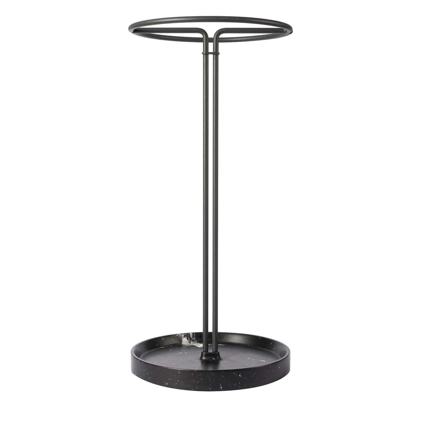 The Pietra L07 Black Umbrella Stand is distinguished by an inky black Nero Marquinia marble base. Finished with a sleek steel supporting structure, its modern silhouette blends seamlessly with a range of decor styles. This unique piece offers a contemporary interpretation of the beauty of natural stone, bringing a rustic yet modern touch to your hallway or porch.