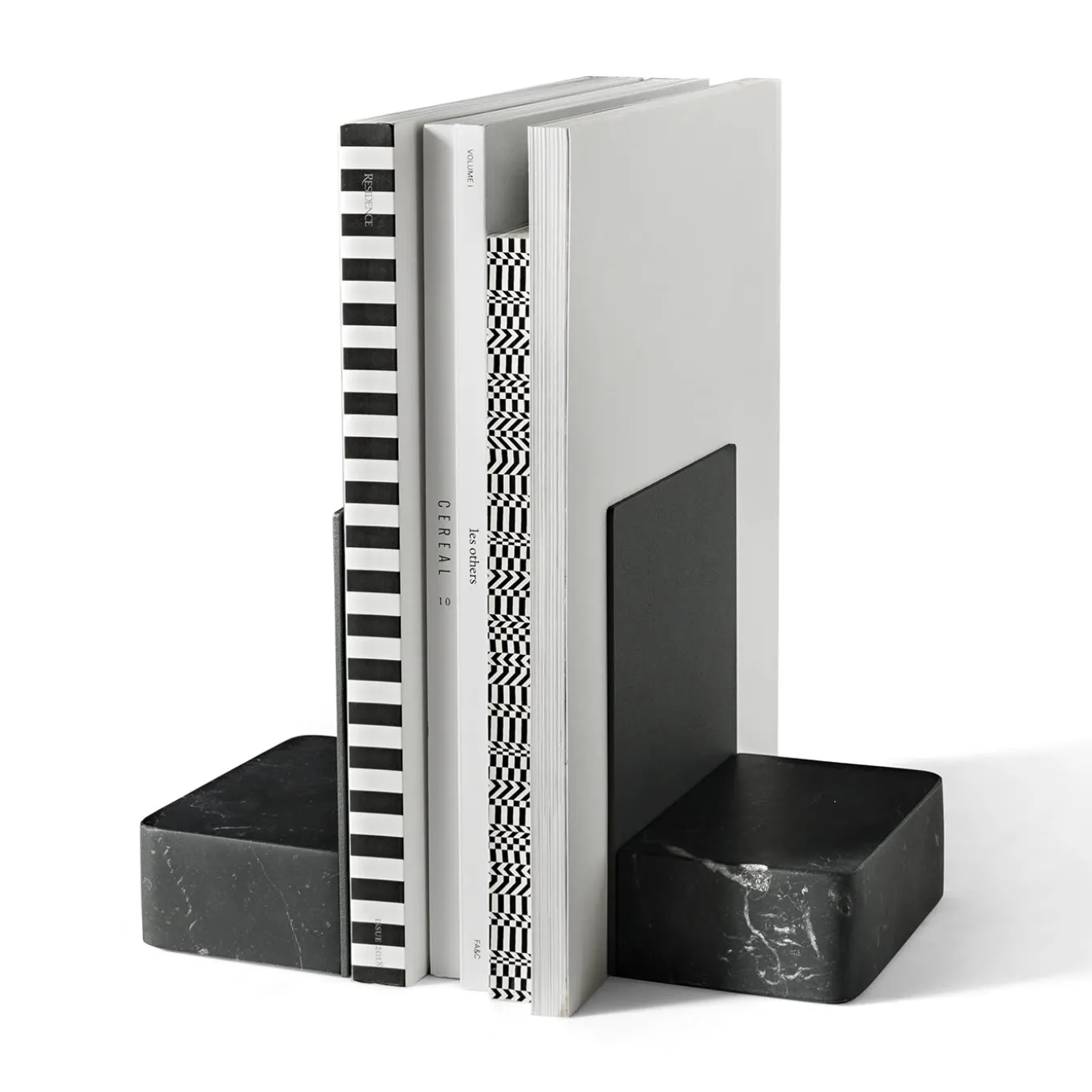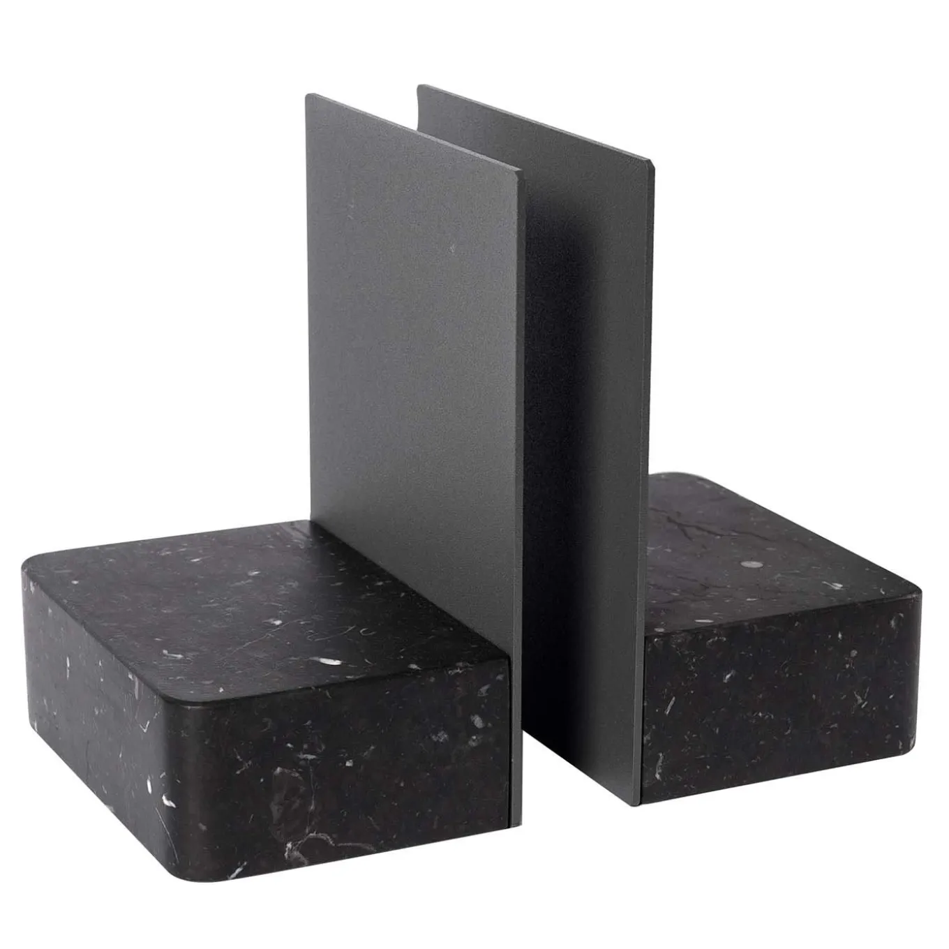 The Pietro L08 Bookends showcase minimalist styling for maximum impact. Their sleek silhouette combines an elegant inky black Nero Marquinia marble base with a perpendicular steel structure. A stunning addition to your shelves or mantlepiece, this pair of bookends highlights the beauty of natural stone, bringing a rustic yet modern touch to the home.
