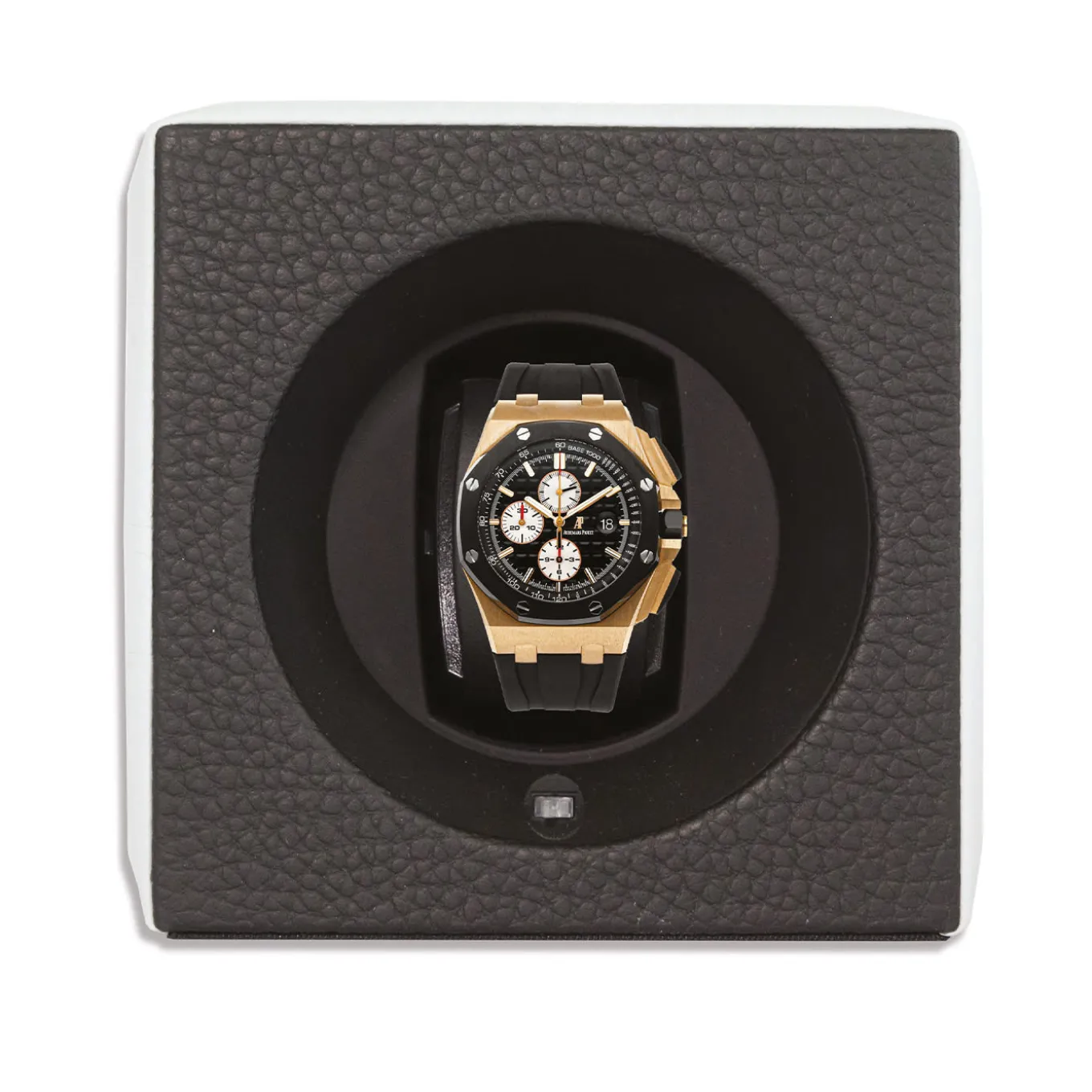 A first-rate design of unprecedented charm, this watch winder combines traditional allure with a sleek and contemporary style. Equipped with a cutting-edge Swiss technology, it is upholstered with soft and fine genuine full-grain leather in a light-blue tone. Also available in 13 other colors, please check the Artemest catalog for details.