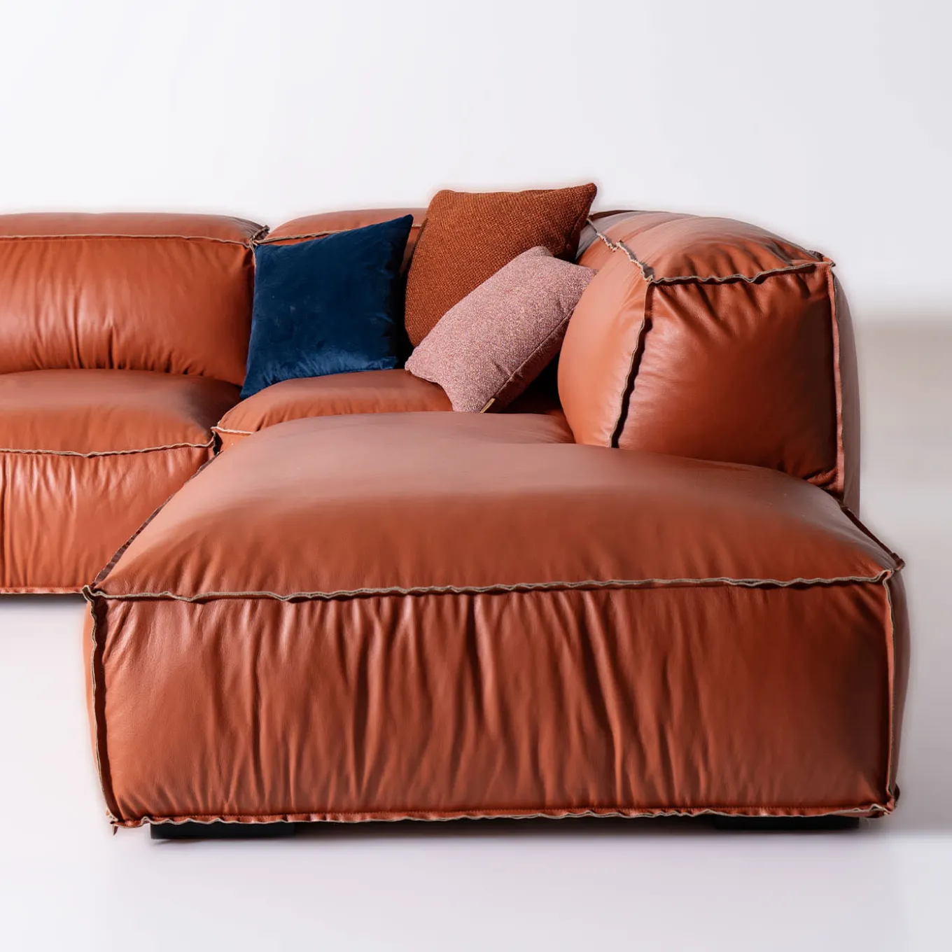 The Placido corner sofa, upholstered in aniline leather, combines elegance and comfort, perfect for daily relaxation in your living room. Its sliding seats extend to offer ample seating space, ensuring maximum comfort. The sofa features a soft structure with multi-density polyurethane foam padding, covered with a natural goose-down duvet. The legs are crafted from beech with a black lacquer finish. Decorative cushions not included.