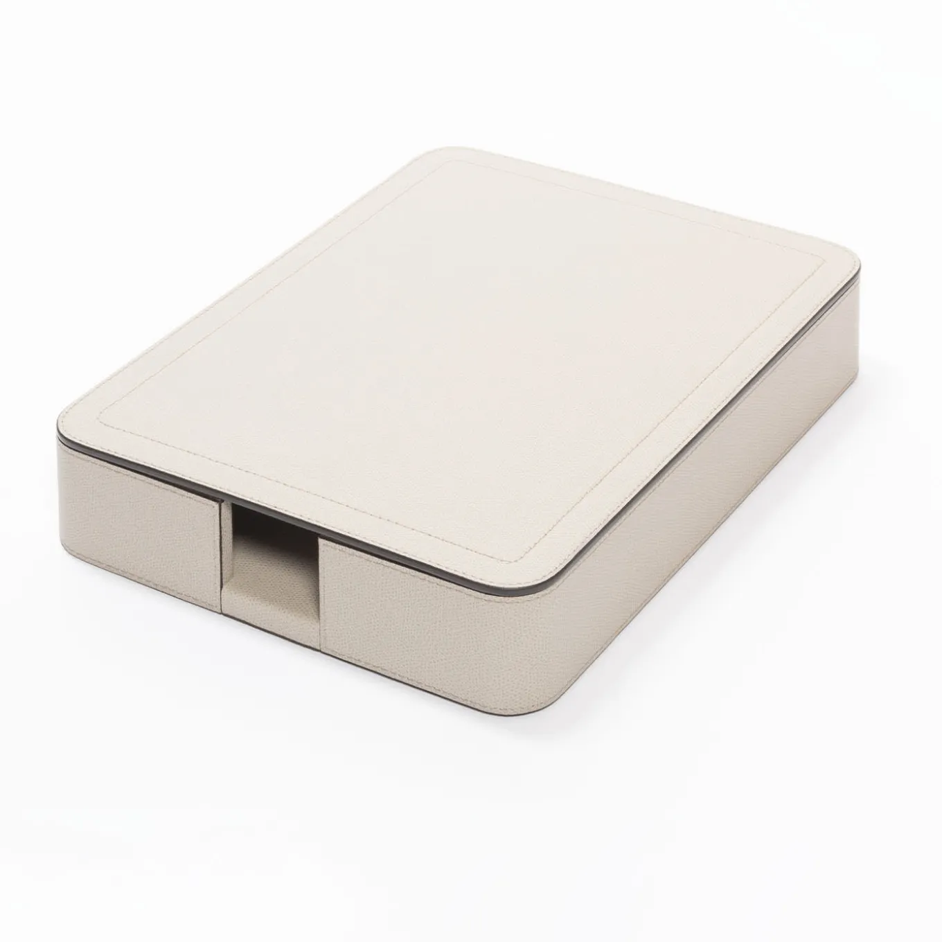 The iconic Polo shape with rounded corners is now declined into a collection of desk accessories. All the pieces of this collection feature a wood structure preciously covered with the finest Italian leather, whose natural charm is fully enhanced by these creations’ minimal geometric lines.