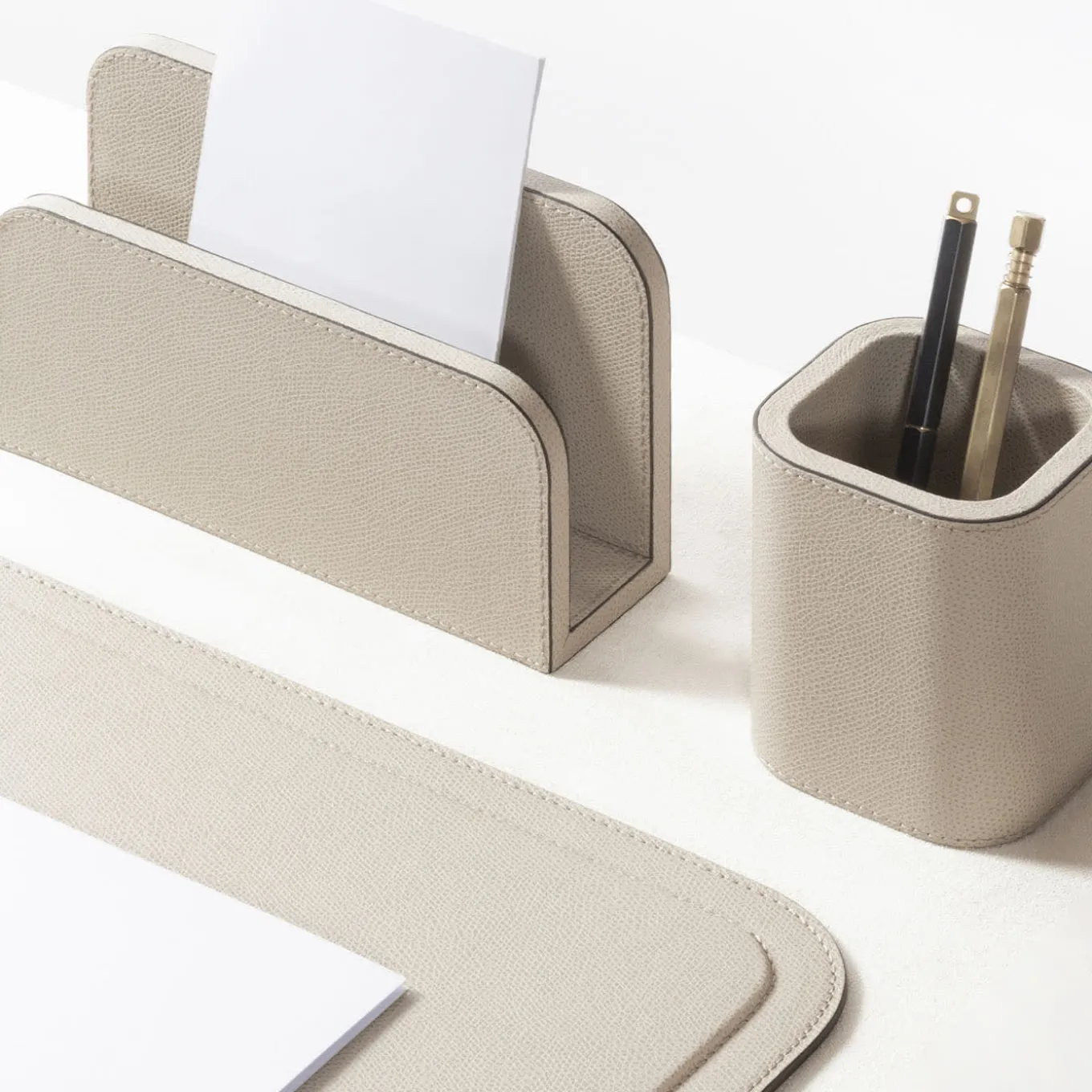 The iconic Polo shape with rounded corners is now declined into a collection of desk accessories. All the pieces of this collection feature a wood structure preciously covered with the finest Italian leather, whose natural charm is fully enhanced by these creations’ minimal geometric lines.