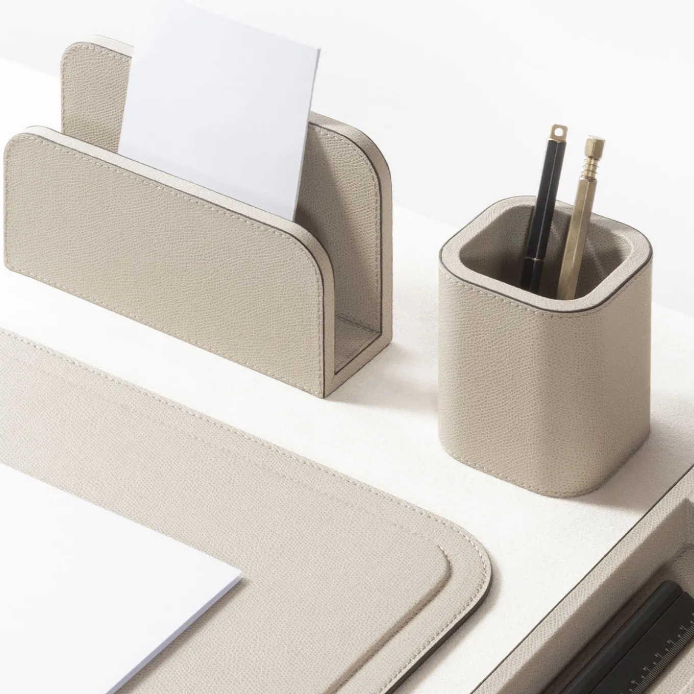 The iconic Polo shape with rounded corners is now declined into a collection of desk accessories. All the pieces of this collection feature a wood structure preciously covered with the finest Italian leather, whose natural charm is fully enhanced by these creations’ minimal geometric lines.