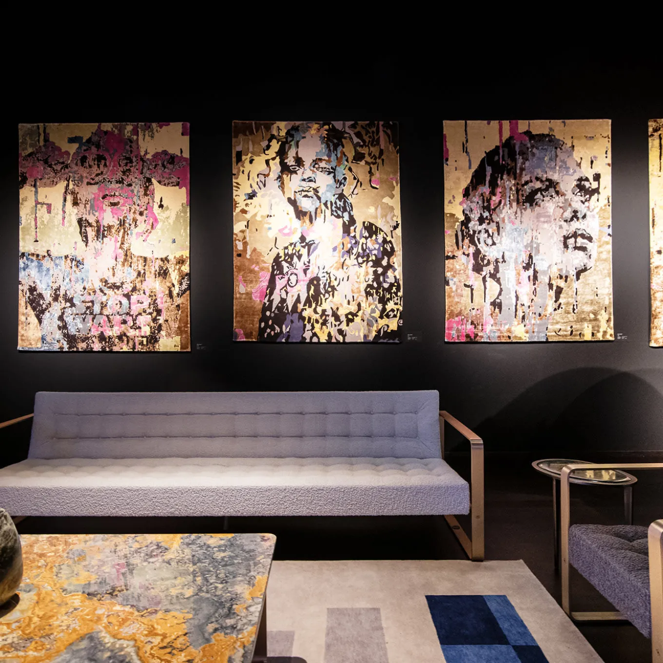 A stupendous, stately accent piece for a contemporary interior, this rug is one extraordinary display of craftsmanship and a testament to Pop Art. Designed by contemporary expressionist artist Marco Grassi, it is handcrafted of 50% silk and 50% wool, boasting a colorful, stylish portrait of a young woman.