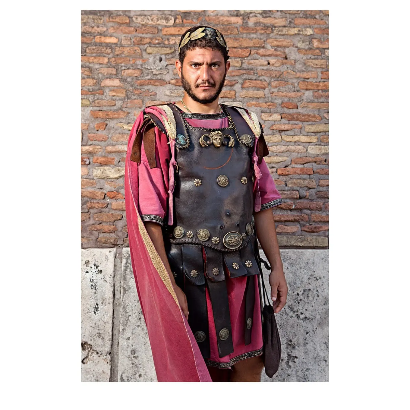 Part of the Popvlvsque Collection counting only 10 pieces, this photograph captures a man dressed as a Roman centurion with a historical monument behind him. He poses for tourists upon payment, a mechanism inviting one to reflect on the mutual exploitation character of their interaction. The shot simultaneously evokes the glory of Ancient Rome while hinting at history-themed colossals shot in Cinecittà Studios, Rome.