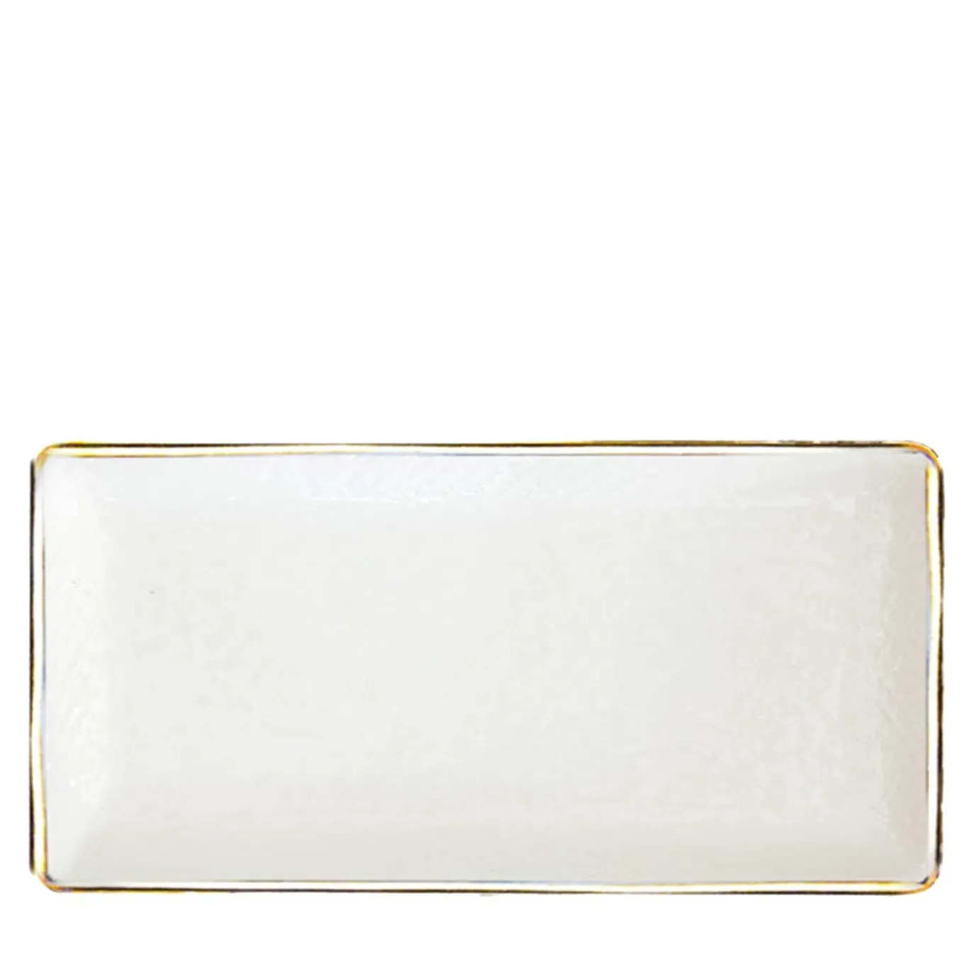Equally complementing either classic and contemporary-styled tables, this eye-catching set of six rectangular plates of pure-white ceramic displays a delicate and sophisticated design. A bright golden rim accents the upper edge outlining an internal, textured surface with a glossy finish.