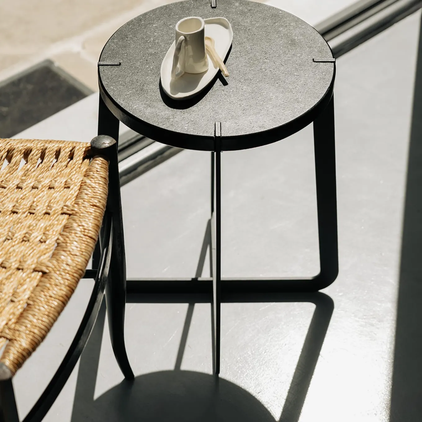The name of the stool recalls the Apulian homeland and the eponymous wine characteristic of one of the most beautiful and fascinating regions of the Mediterranean. Primitivo has a painted steel frame that supports the porphyry or oak seat with four cuts that form the stool’s signature element.