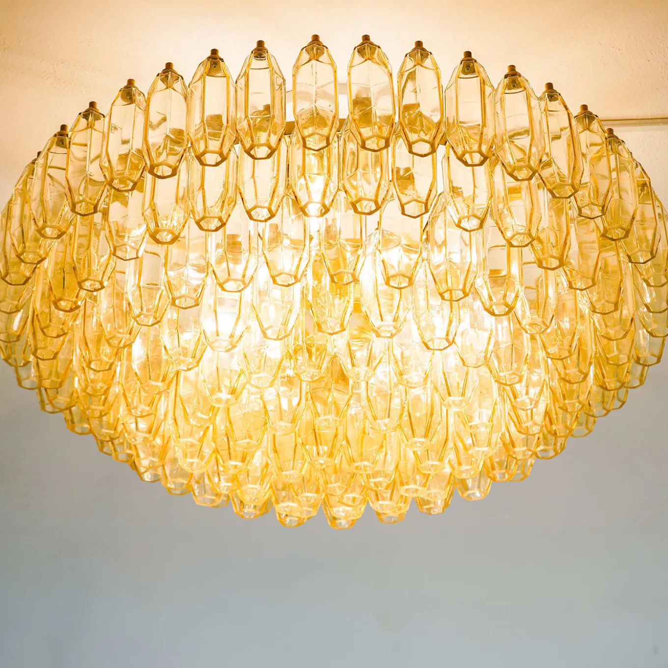 Displaying a cluster of 169 mouth-blown prismatic glass elements in the shape of a pencil, this chandelier will not fail to impress with its ethereal yet bold presence. A double magnifying lens effect characterizes each shade, a clever solution for superb light diffusion and clever concealing of the hardware frame that offers the illusion of floating lights. Please contact the Concierge for available variants.