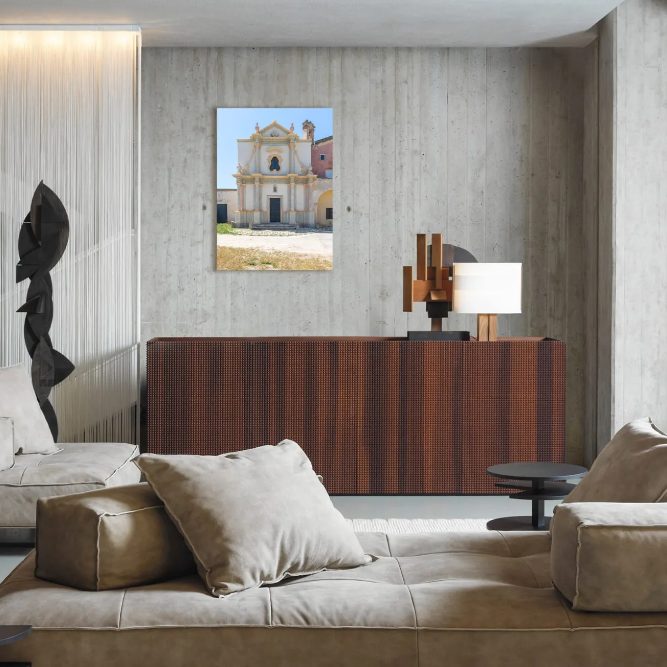 The Private Church of the Immacolata in the Masseria Brusca is located in a historic Apulian farmhouse of Masseria Brusca. It is characterized by delicate colours and clear eighteenth-century architectural lines. This is a limited edition of 5. Frame not included.