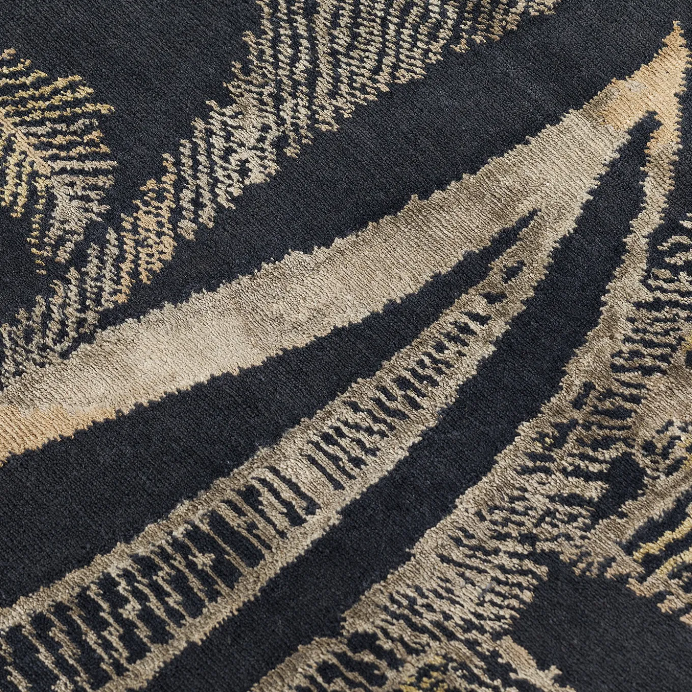 The Profumo Mirto rug by Marta Giardini features a sophisticated botanical motif reminiscent of a bird’s eye view of grass meadows swaying in the wind. This design combines vibrant shades crafted with bamboo silk and soft wool to create intricate patterns of leaves, flowers, and pistils in a harmonious weave. The dynamic interplay of filled and empty spaces evokes a sense of natural movement and contemporary elegance. Made in India.
