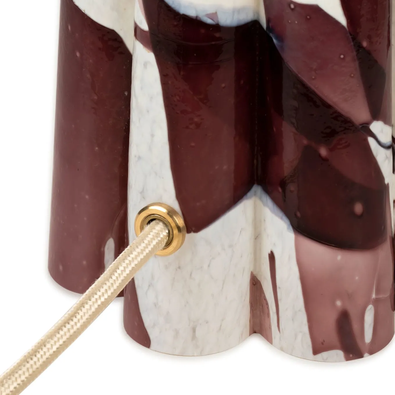 Introducing the Stories of Italy Bucket table lamp, a testament to craftsmanship. Its Murano-blown glass base, crafted with the Nougat technique, features a flower-shaped design with amethyst glass shards on an ivory base, exuding elegance. Paired with a cotton lampshade, brass finishing, and a champagne-colored fabric cord, this lamp offers both style and practicality. A perfect focal point for any space, it enhances your decor with timeless beauty and sophistication.