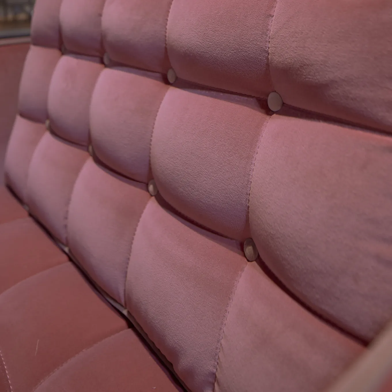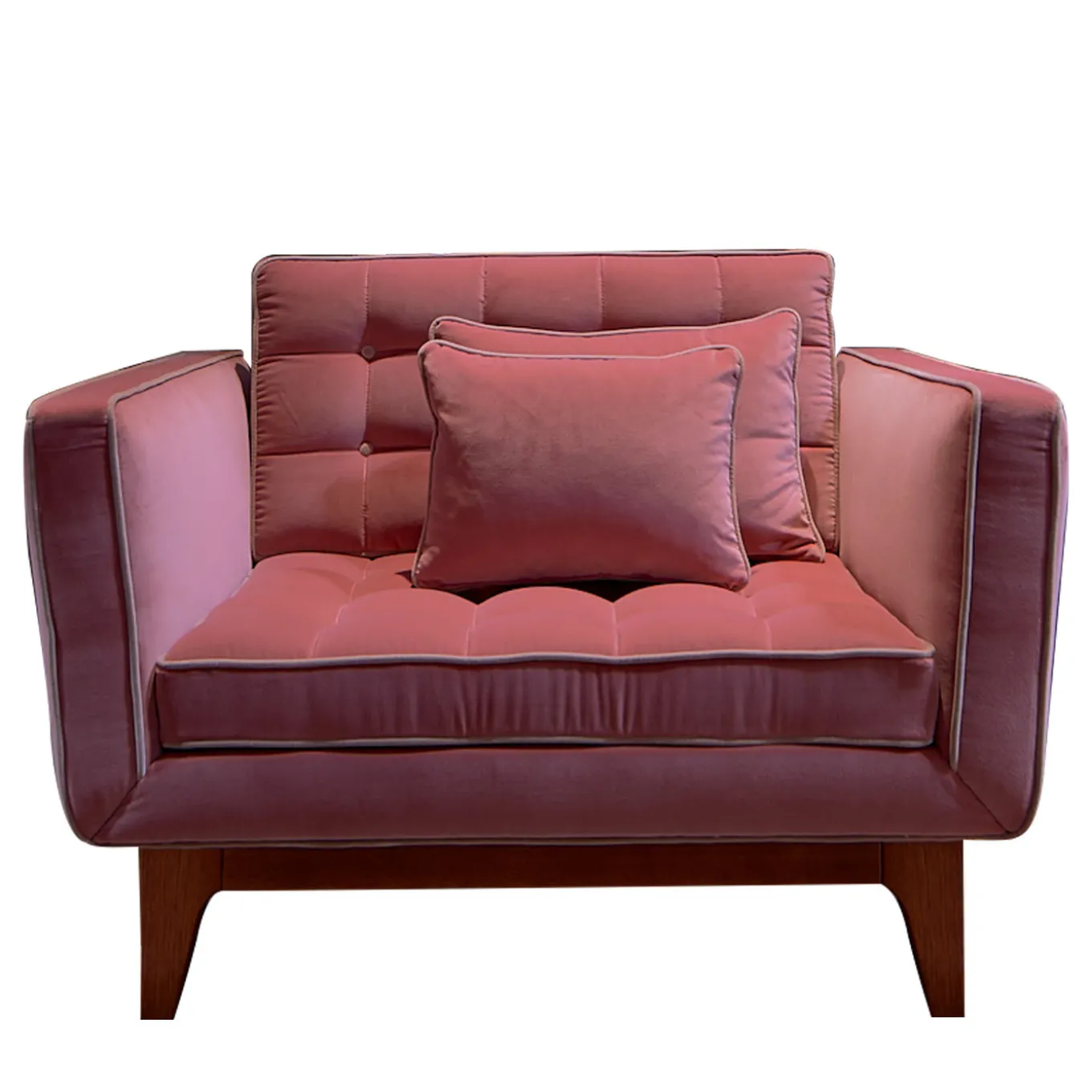 This roomy, comfortable armchair is in a soft, pampering shade of powder pink. Its base is made from prestigious Sipo Mahogany, while its body is covered in cotton velvet with contrasting piping. Its seat and back are quilted for an added touch of style. The Chelini Firenze Collection unites traditional Made-in-Italy craftsmanship with a modern design.