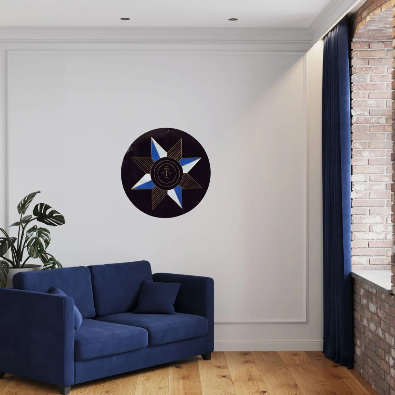 This artistic decorative plate, made of engraved and hand-painted metal, celebrates the iconic Sun motifs found in Sardinian textile art. Designed by Eugenio Tavolara for the weavers of Sarule in the 1950s, it embodies a rich historical and cultural legacy. The plate’s striking blue, white, and gold elements contrast against its black background, infusing contemporary spaces with vibrant character and heritage. Ideal for various home settings, it showcases meticulous craftsmanship.