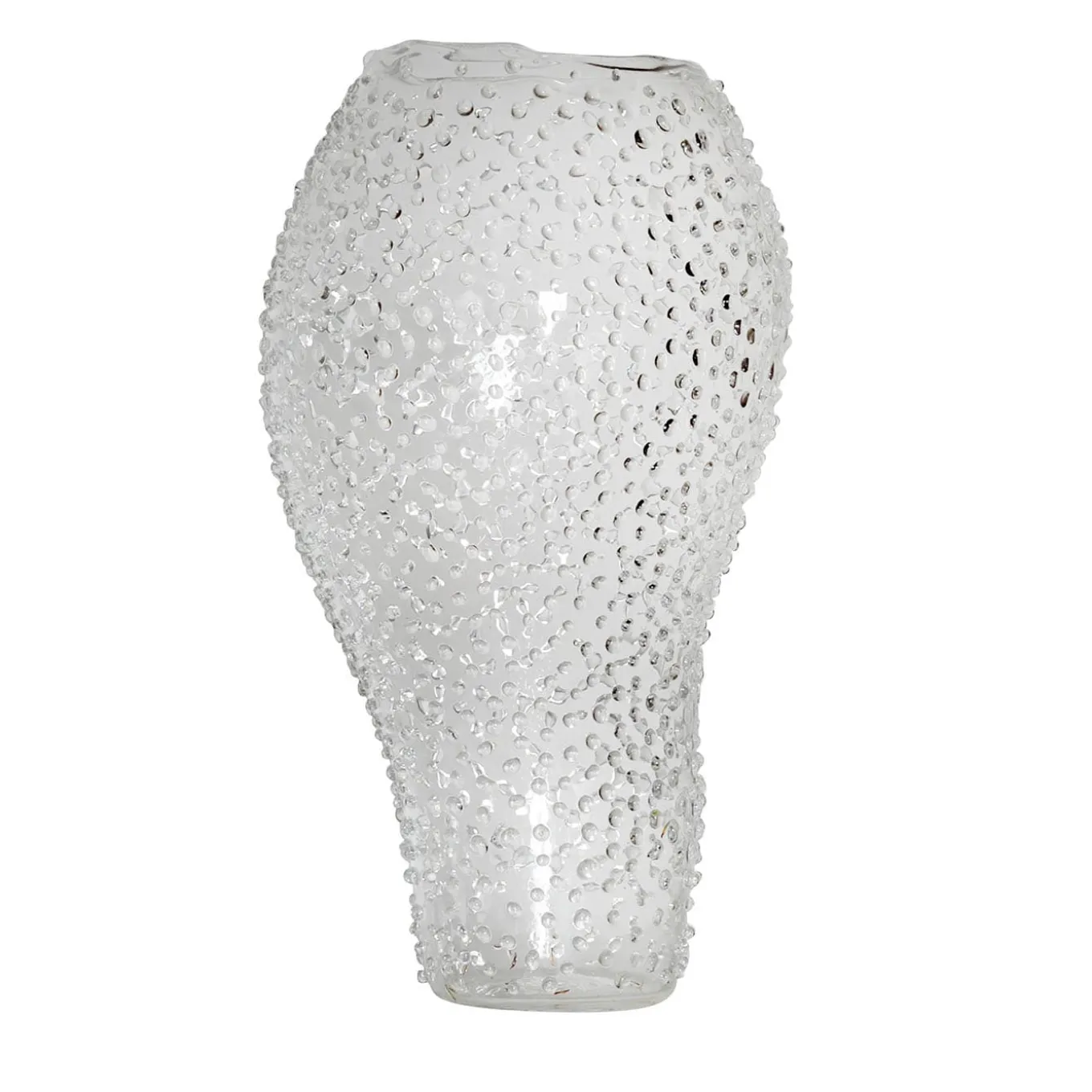 The Rainy Vase embodies the essence of open-air living, with its organic silhouette and delicate rain effect. Adorned with droplets that capture and reflect light like diamonds, it exudes elegance and refinement. Each droplet is meticulously applied by hand, taking around 3 hours to create a unique, random pattern. Crafted with precision, it symbolizes water and adds a touch of artistry and sophistication to any space.
