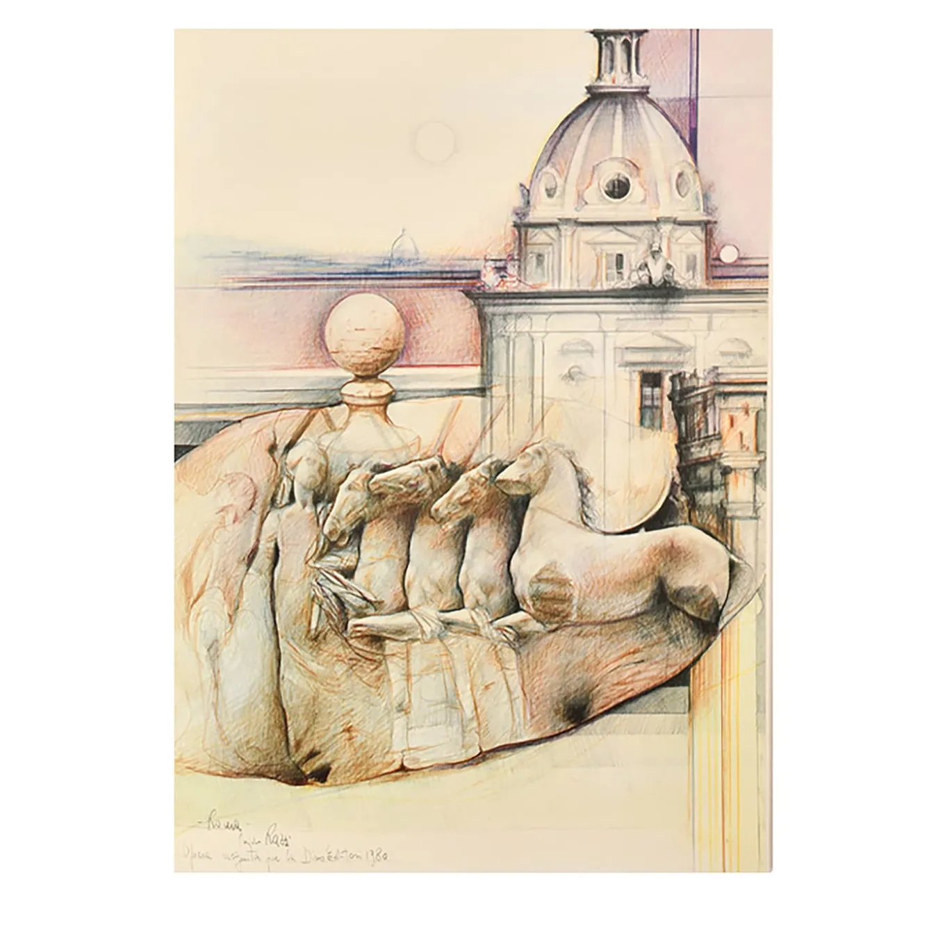 A numbered print from the Book Roma Painting Collection by Italian Artist Donghi, printed in only 1.000 copies on Artisanal Cotton Paper. All the paintings in Book Roma Collection were made by artists belonging to the Roman school of the ’70s, including De Chirico, Fazzini, and Failla. Artists who, through their paintings, have spread the image of Rome in the world.