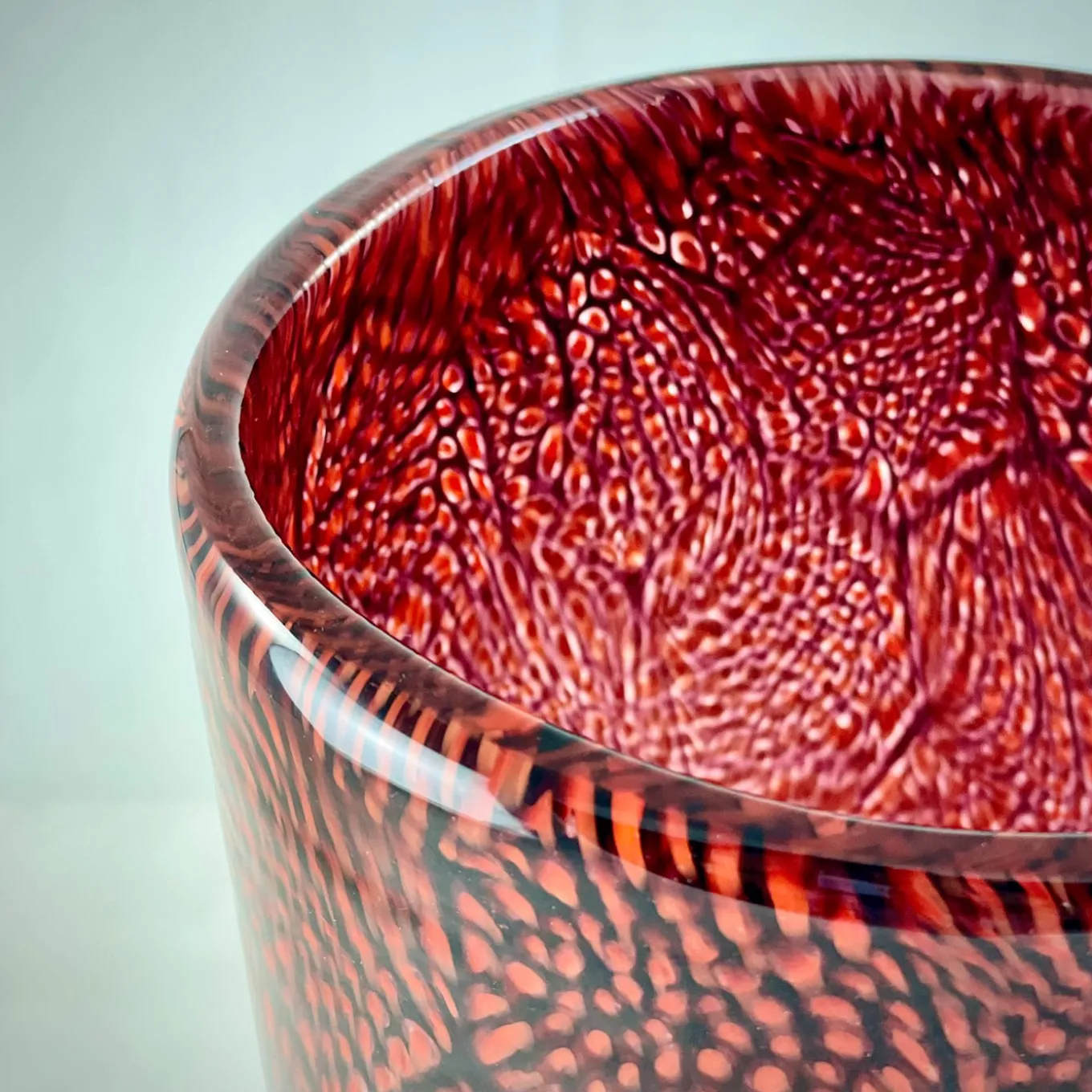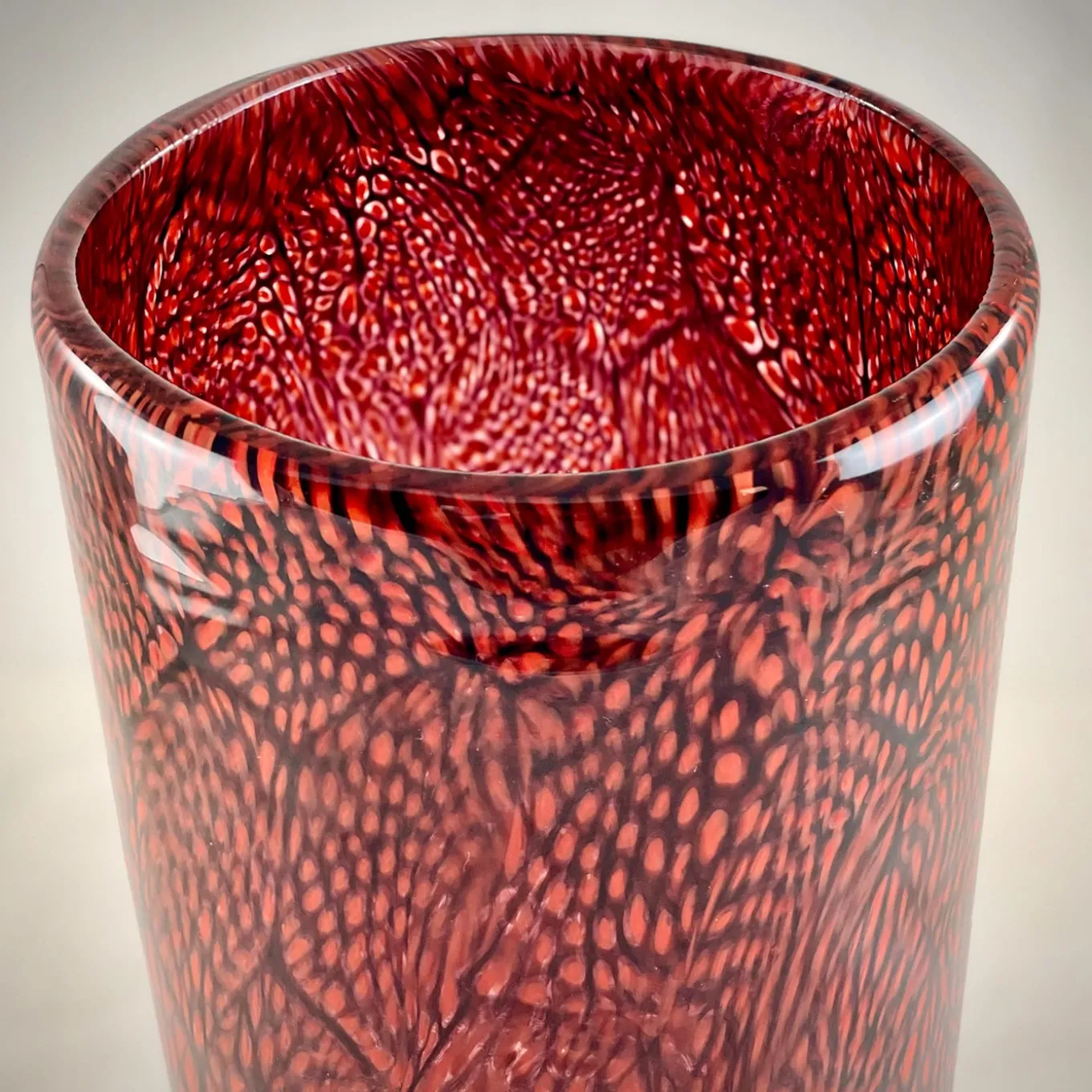 Red & White Filigree Murrine Vase