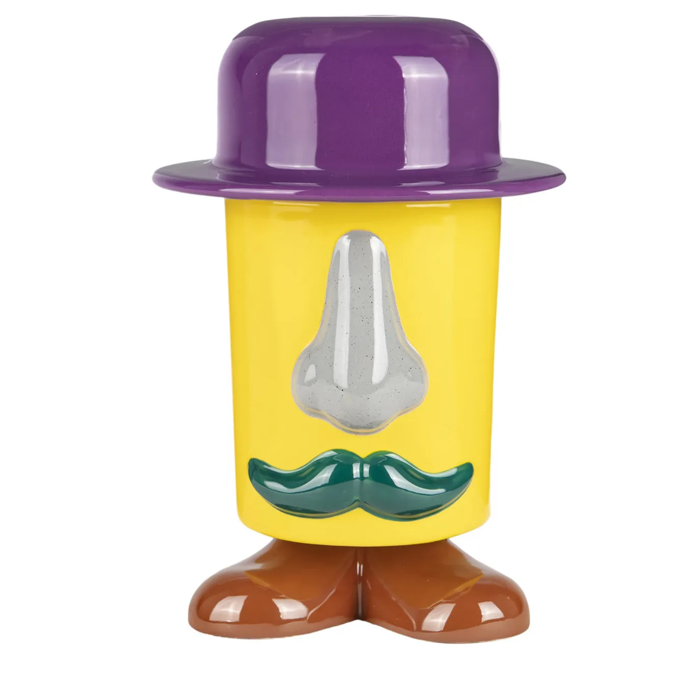 This multipurpose ceramic container flaunts a playful anthropomorphic silhouette enhanced by exaggerated anatomical details. An iconic objet d’art for a contemporary interior, it is inspired by a classic vintage toy deftly handcrafted and painted by hand by expert artisans. Boasting an eclectic combination of hues, this piece is also available in a white and gold variant upon request.