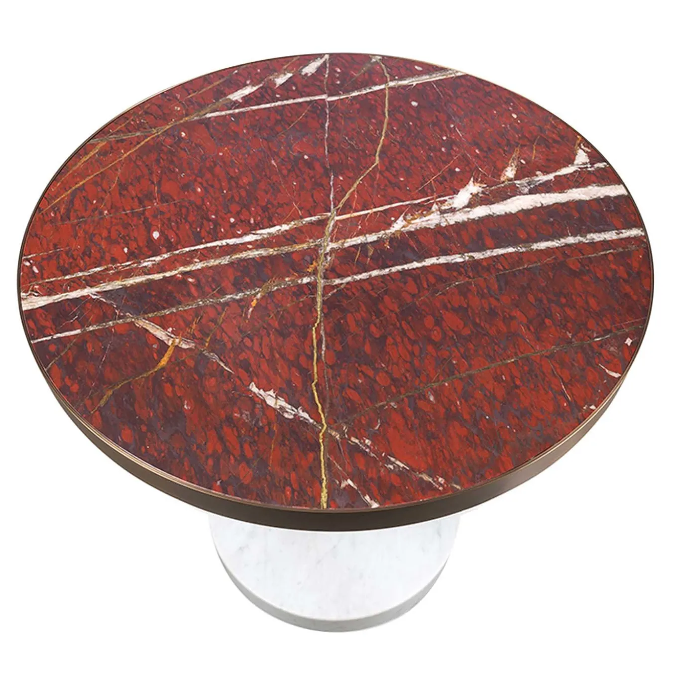The surface of the René Bistrot Table is broken into smaller pieces and repaired with liquid gold. Piero Lissoni drew his inspiration for the tables from the Japanese art of Kintsugi, which views cracks in ceramic as mere parts of its natural life cycle. The collection uses heritage stones that are no longer quarried, making them even more special.