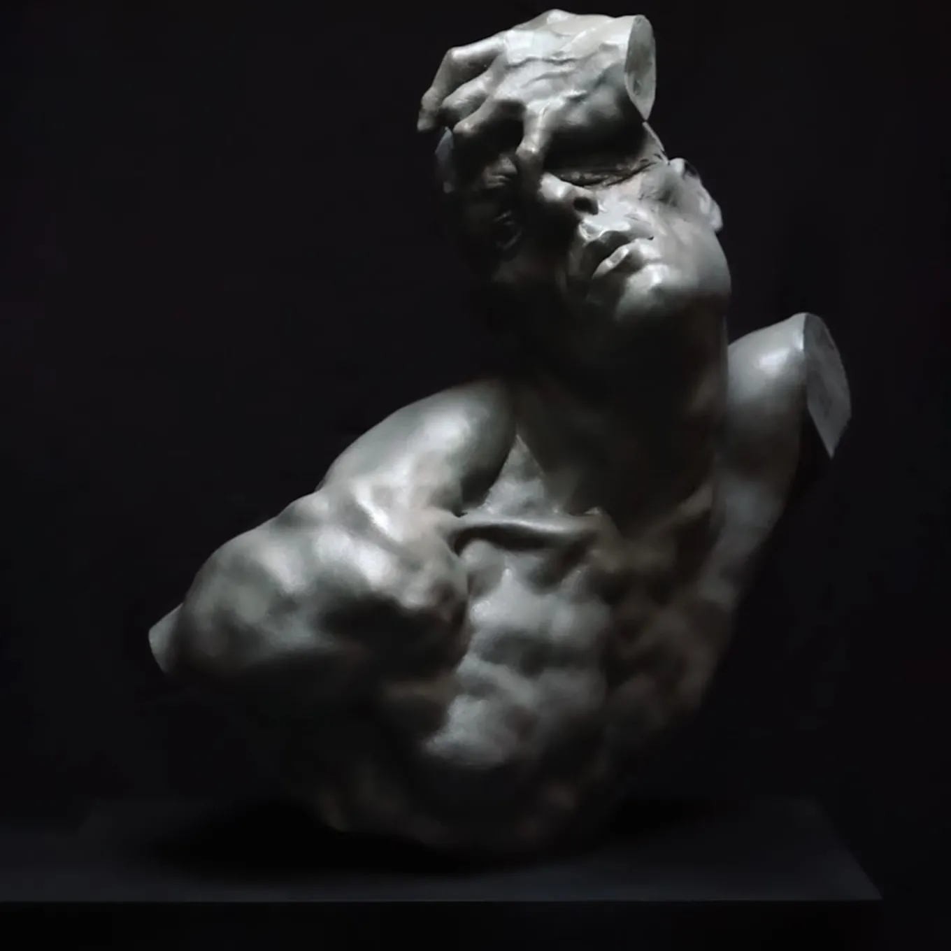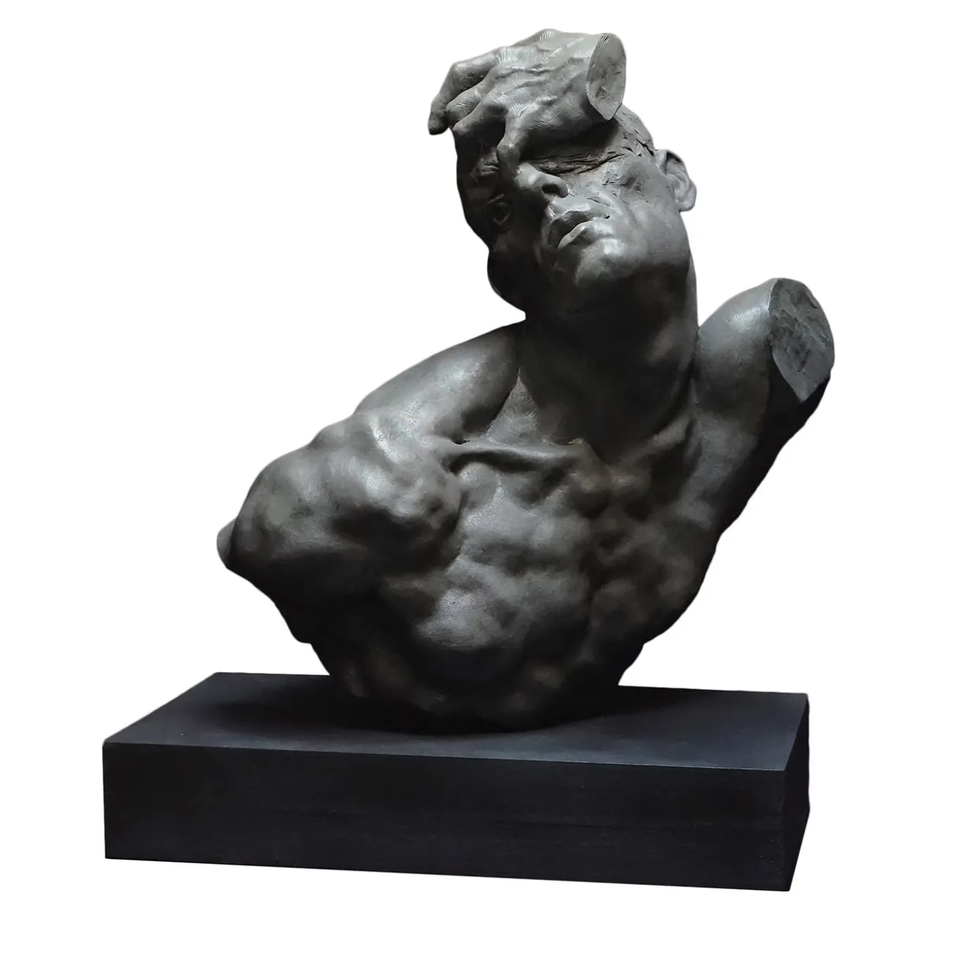 This fragment of Resilience, made in resin, captures the essence of perseverance, focusing on the portrait, hand, and upper torso. The powerful gaze balances reflection and determination, while the upward-reaching hand symbolizes aspiration. The torso embodies the fluidity of time and personal growth, preserving the sculpture’s message of resilience and continuous self-evolution. Each piece is unique, due to handcrafting, slight changes may occur.
