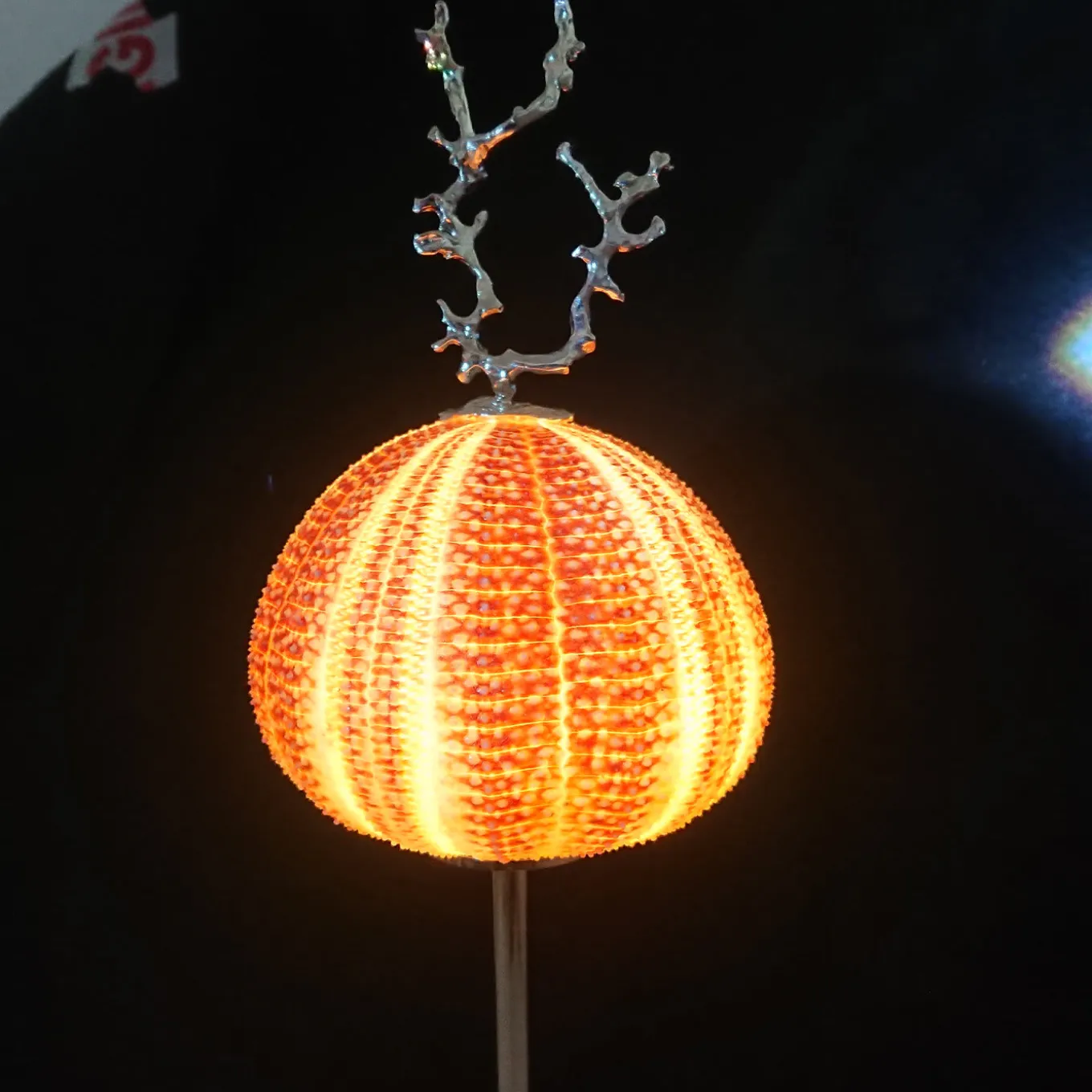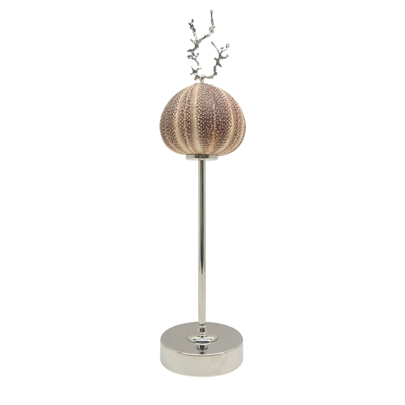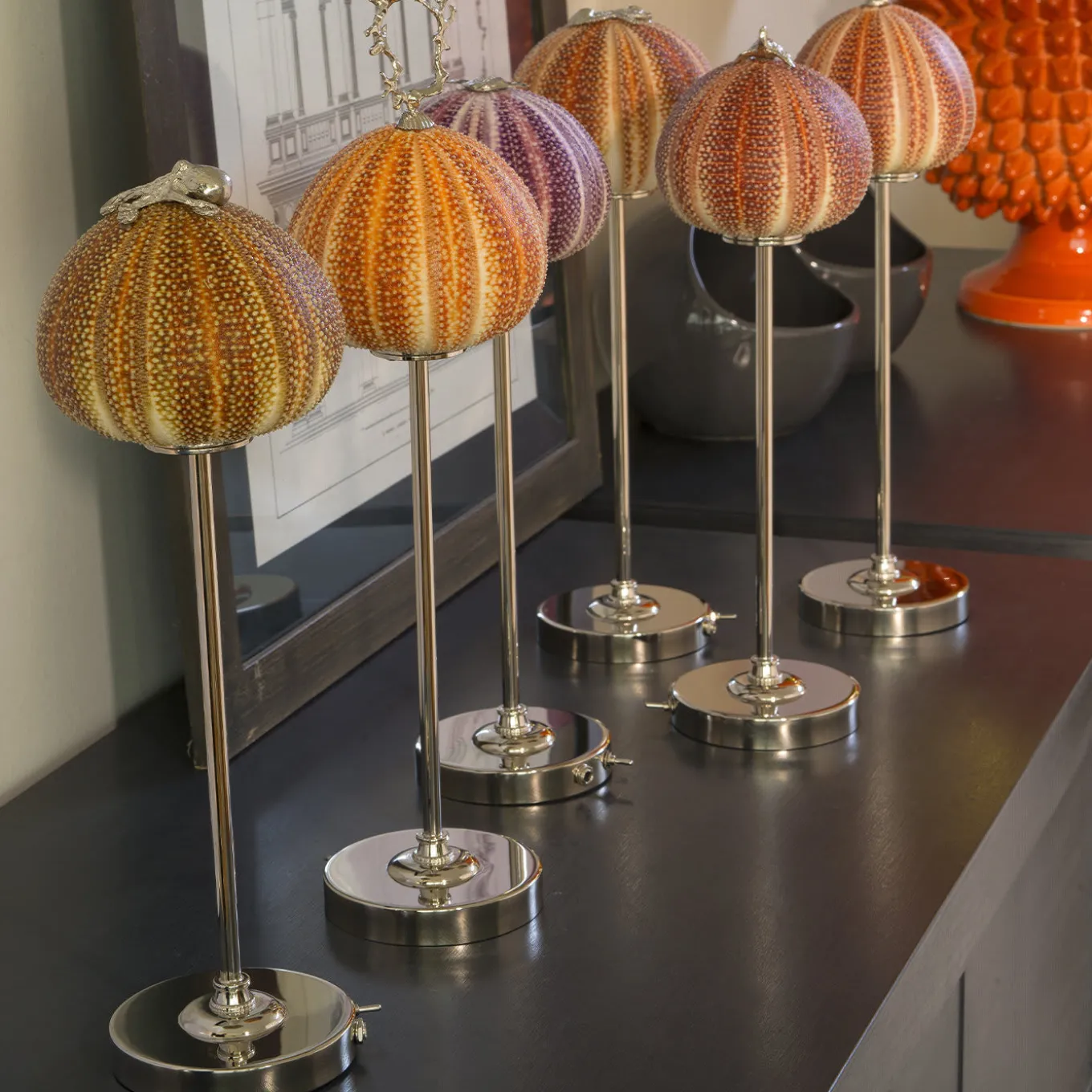 The stylish and unique Rich-O Lamp is crafted in nickel-plated brass and features a natural sea urchin as the shade with a piece of brass coral on the top. A rechargeable LED lamp, lasting for 8 hours, makes this perfect for use on restaurant tables, in lounge bars and on yachts.