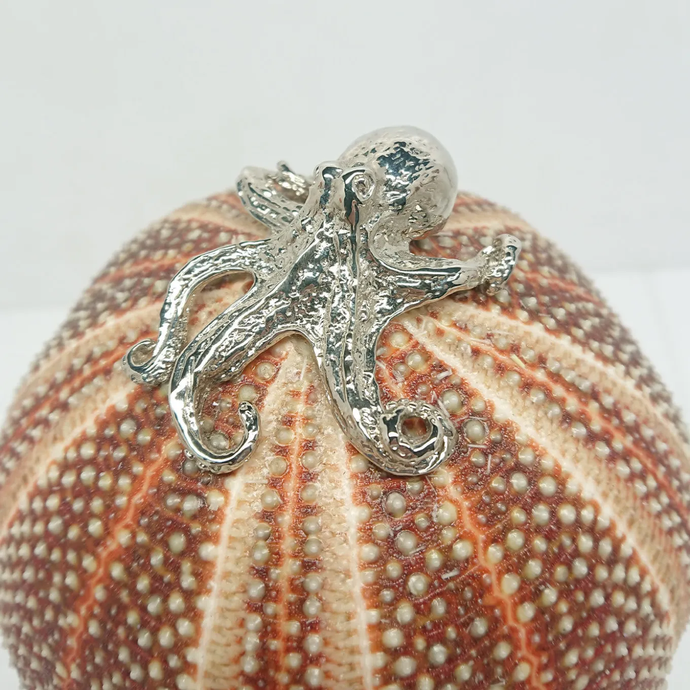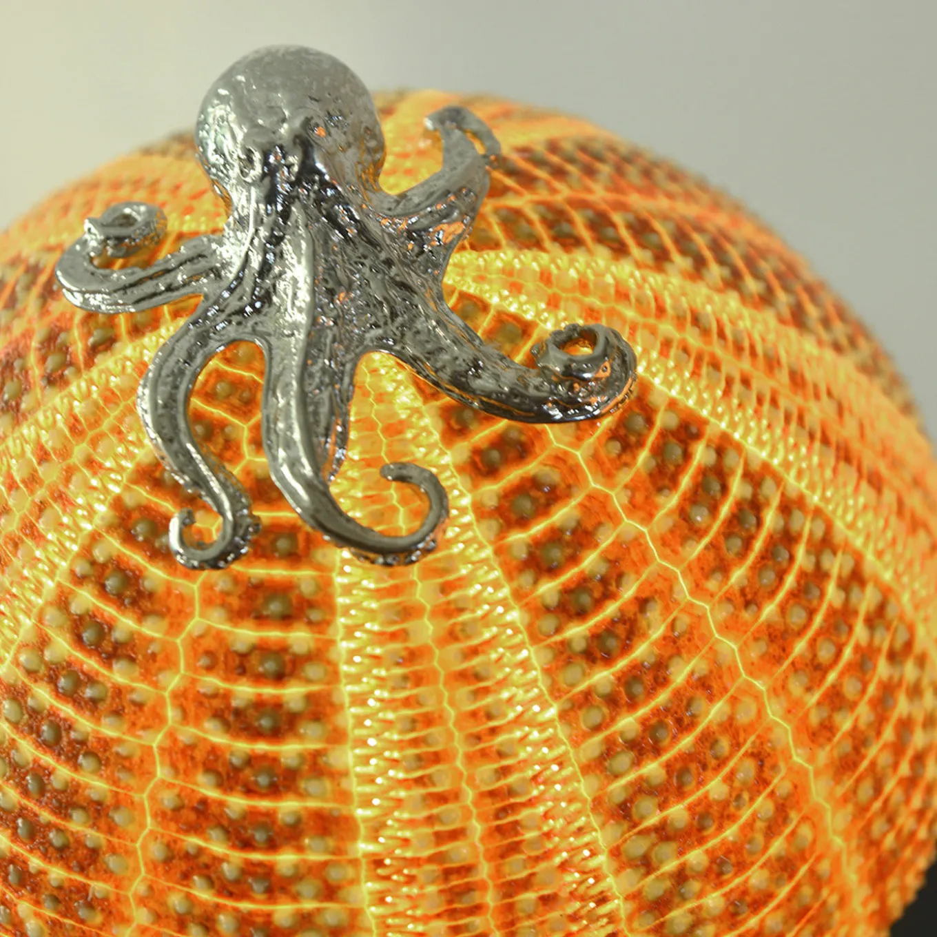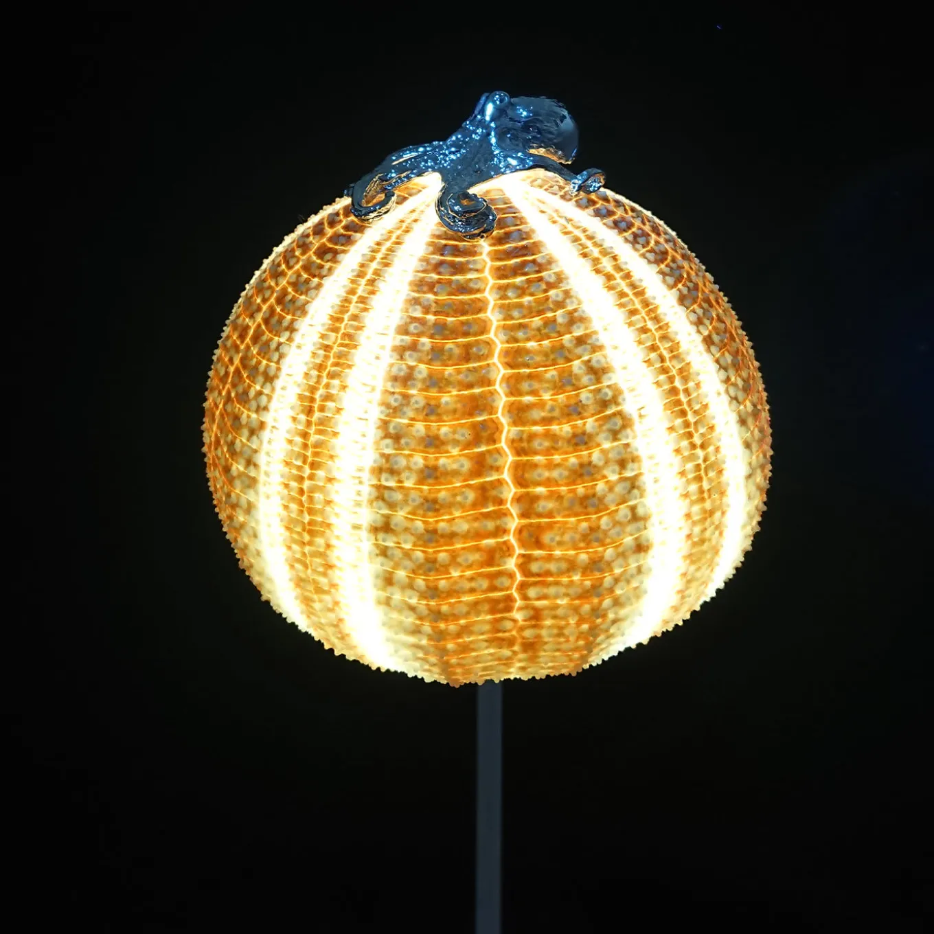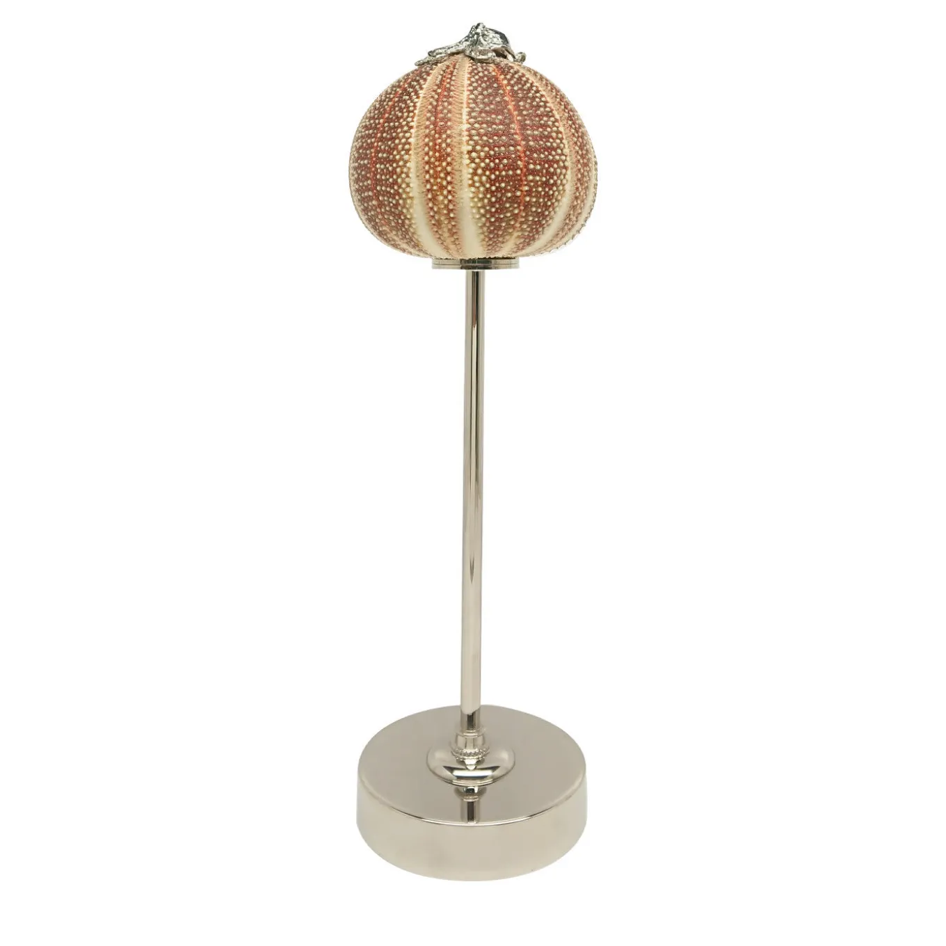 The highly original Rich-O Lamp is crafted in nickel-plated brass and features a natural sea urchin as the shade with a brass octopus on the top. A rechargeable LED lamp, lasting for 8 hours, means that no cables are required, making this perfect for use on restaurant tables, in lounge bars and also great for yachts.
