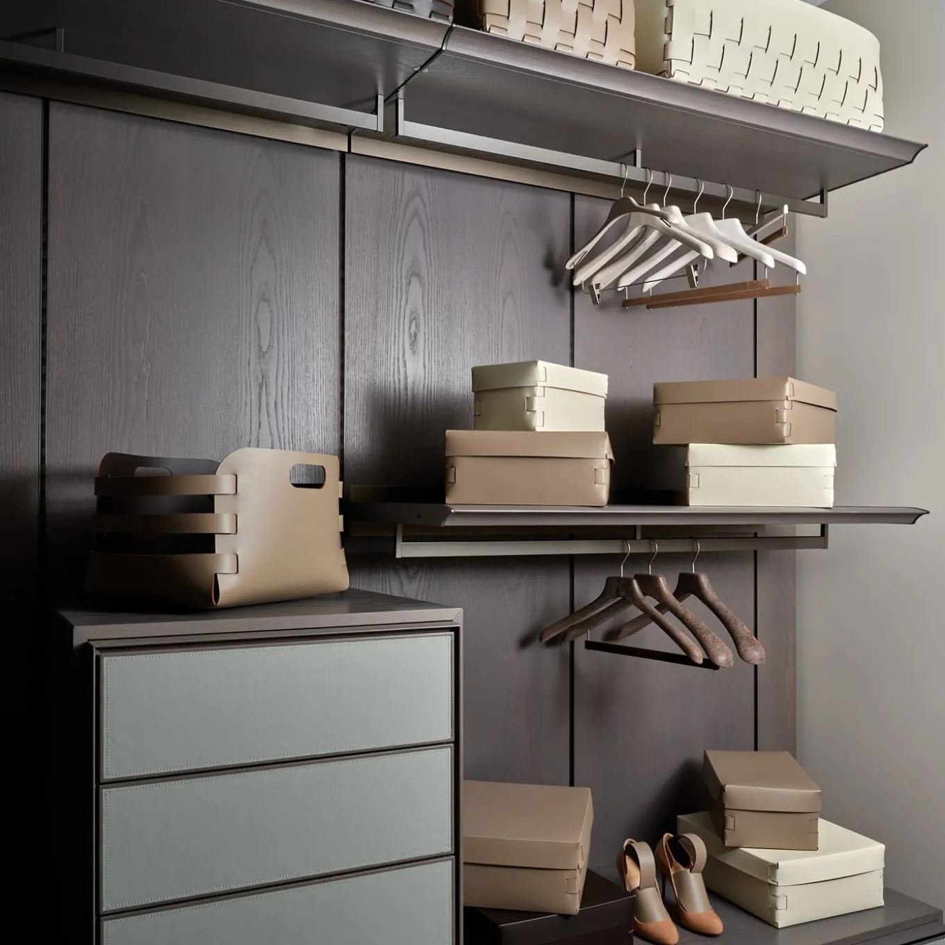 This stylish leather basket is perfect for storing magazines, plaids, and slippers, keeping your space organized and tidy. The elegant color combination of cappuccino and chocolate adds a touch of sophistication to any room. Designed by Ekaterina Borovkova.