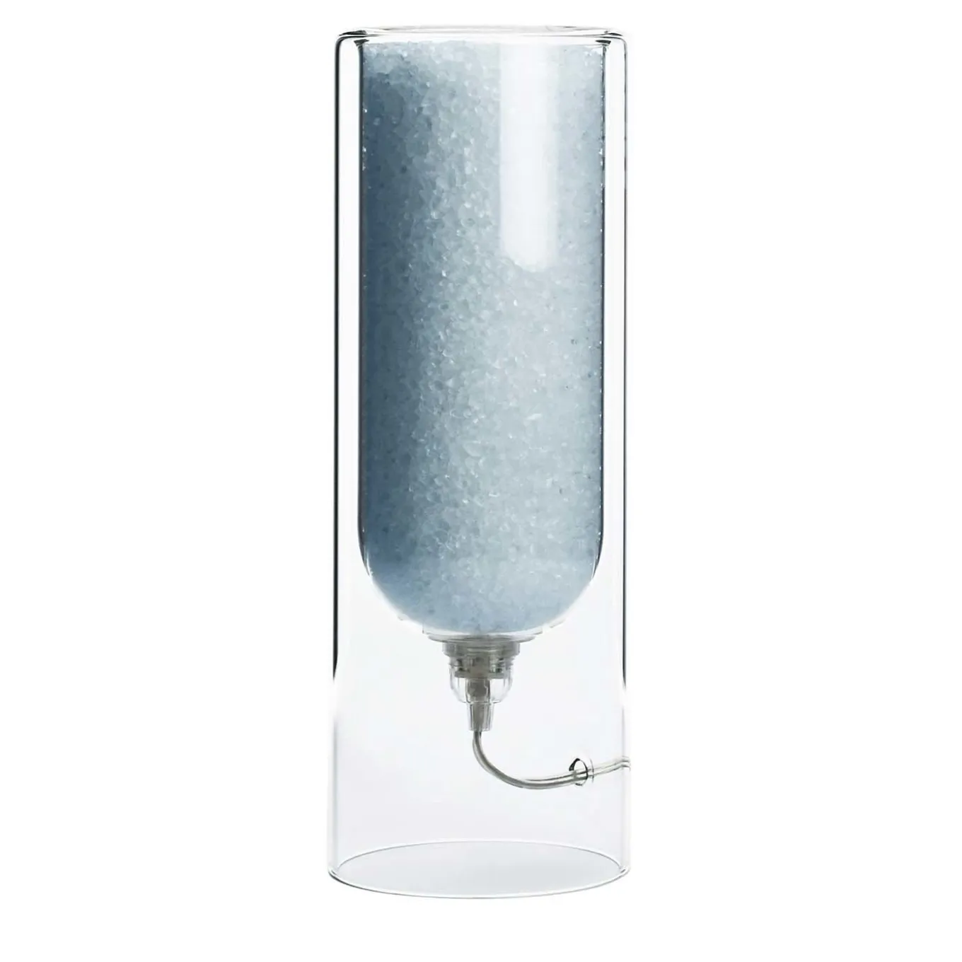 This extra-small version of the limited series Rocklùmi glass table lamps (where rock hints at the rock salt and “lumi” is the Italian referring to non-electrical lights) exploits pure rock salt crystals housed in its cylindrical body to turn into a humidity regulator. The included, low-consumption LED light (4W A+++) lights up the crystals accenting their light-green hue obtained with vegetable pigments. Suitable also as a fragrance diffuser by adding essential oils’ drops onto the top, this design features a fully-recyclable frame held together by an interlocking system.
