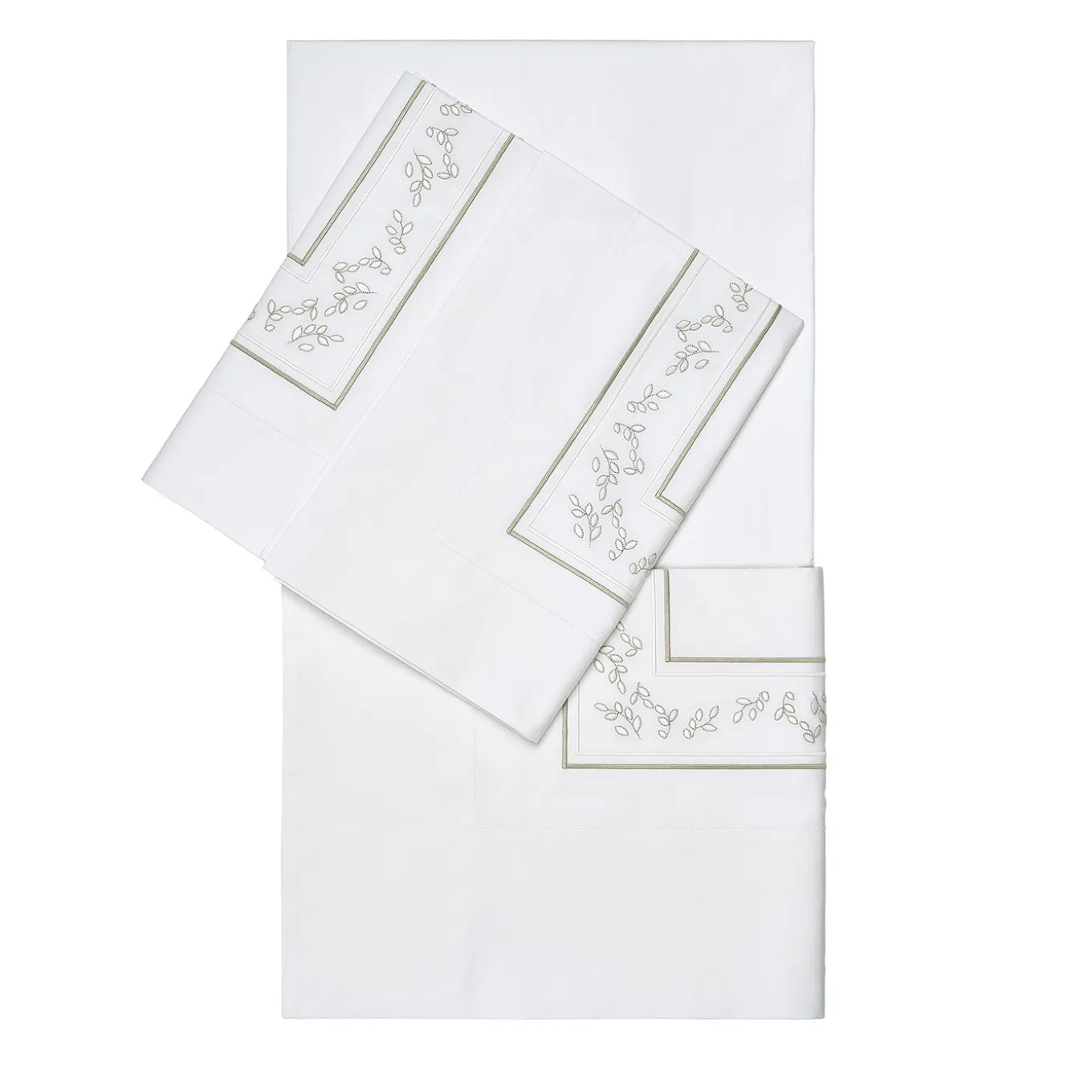 A design which never fades nor goes out of style. For those who dream their nights away basking in beauty. Threads are made of super-fine gauge fibers woven into a crisp yet extremely soft product. Verderoccia sheets are made to dive in, sleeping is optional. A signature embroidery on the new Estremo percale, Made in Italy. 100% Egyptian Cotton. One top sheet, one fitted bottom, two standard shams. Custom-made by Verderoccia artisans. Customizable upon request.
