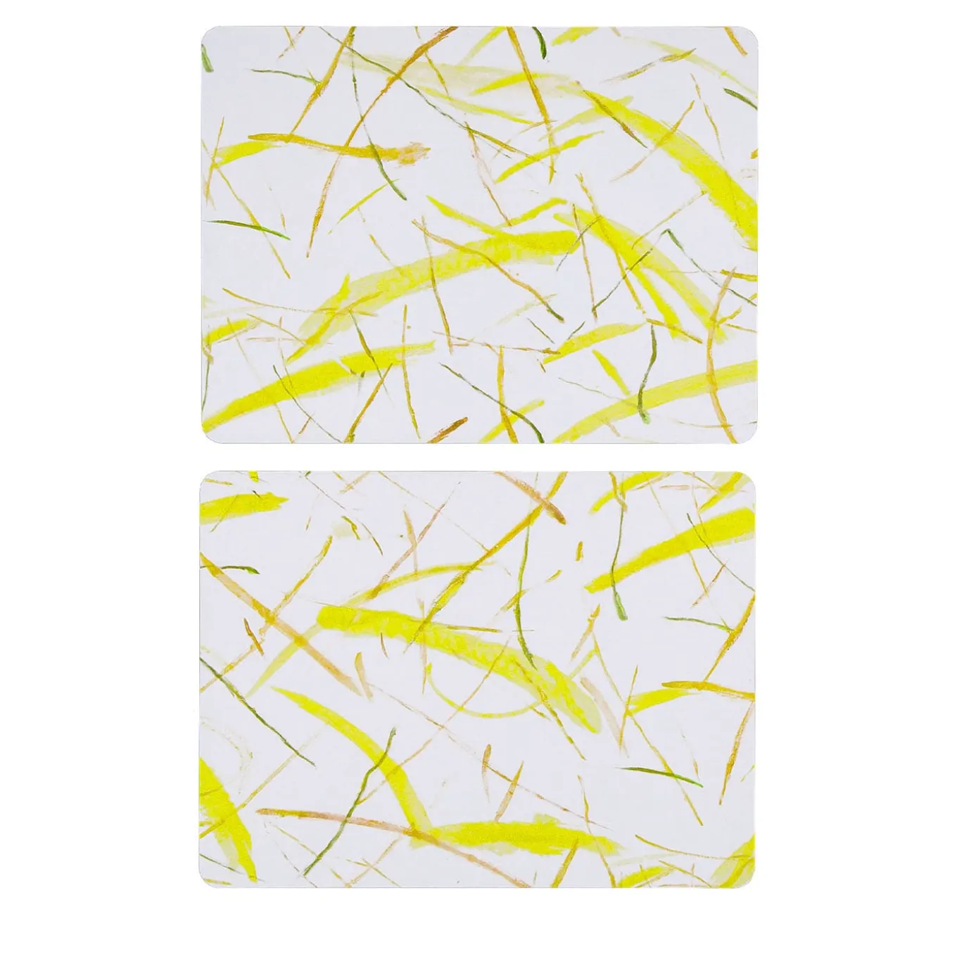 The original Luisa Longo artwork has been digitally transfered with the highest tridimensional effect on a extra shine laquered wood-fiber mat with slightly rounded edges. Every mat is different, cut from the same artwork creating a precious and artistic table setting. The back is in anti slippery natural cork . Self print linen cotton napkins are available on request and matching coasters. Printed wood fiber mat.