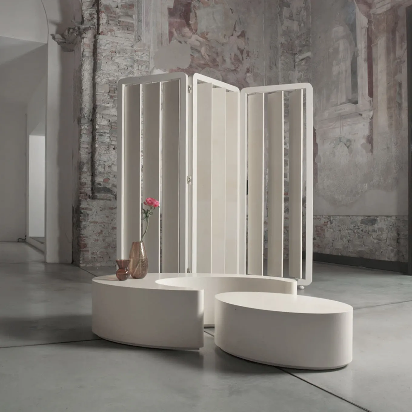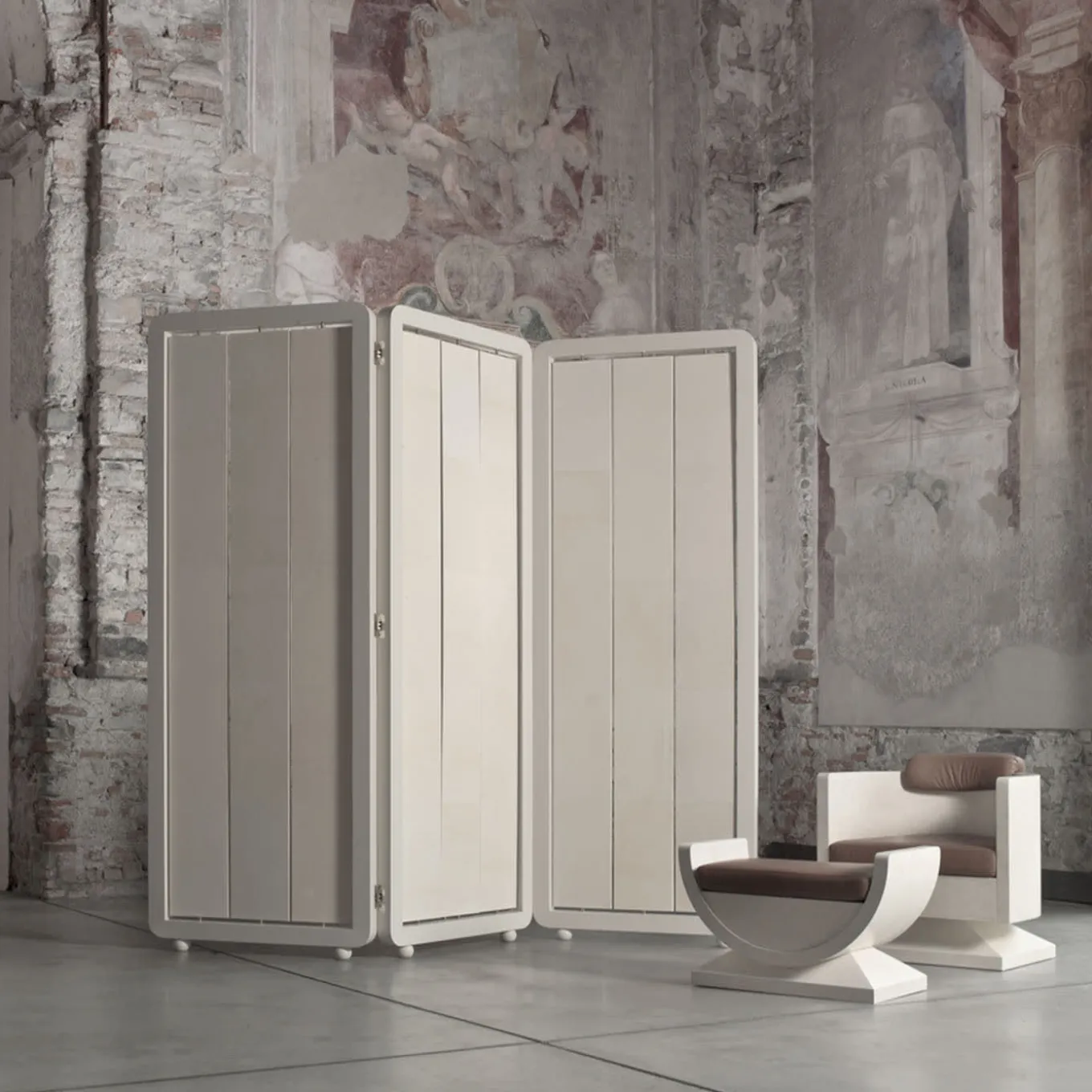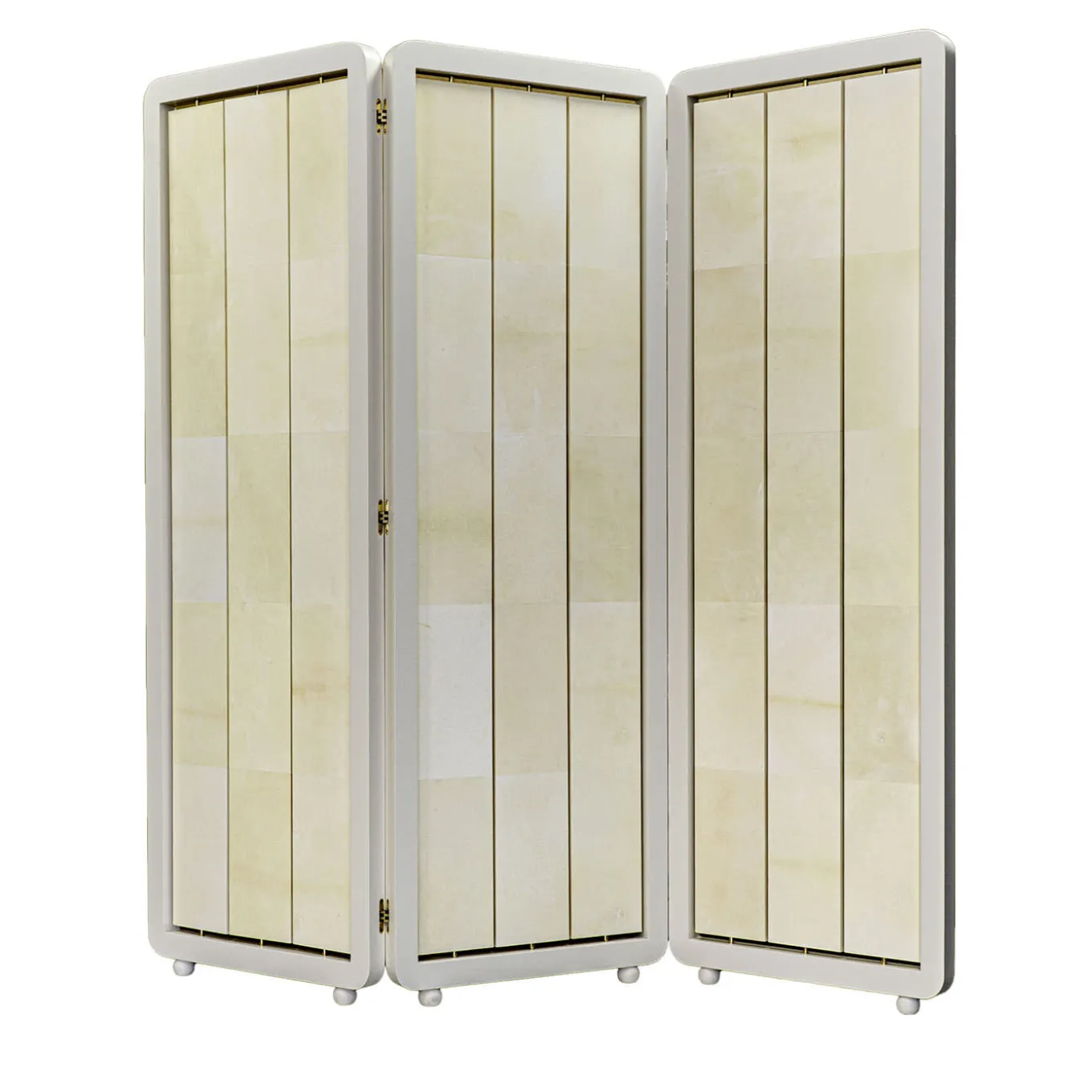 Crafted with meticulous attention to detail, this room divider designed by Beatriz Silveira, features a lacquered wooden frame with rounded edges, exuding sophistication and charm. The revolving panels are adorned with natural parchment, showcasing the timeless beauty of leather through naturally varying shades. With a matte finish enhancing its allure, this screen serves as a practical room divider and a stunning decorative piece.