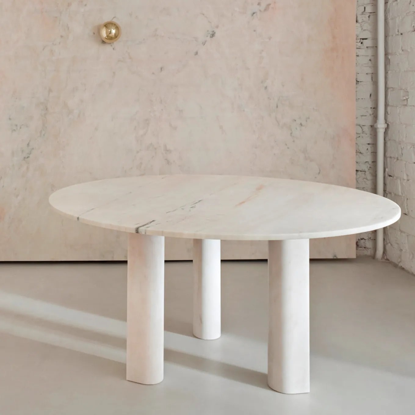 The Rosa Portogallo marble is the star of the show in the Lovemelovemenot Dining Table, designed by Michael Anastassiades to highlight the opulence of the marbles chosen for the collection. Instead of a highly polished finish, the designer chose a matt look which provides a more contemporary feel to the stone, highlighting the specific qualities through this subdued process.