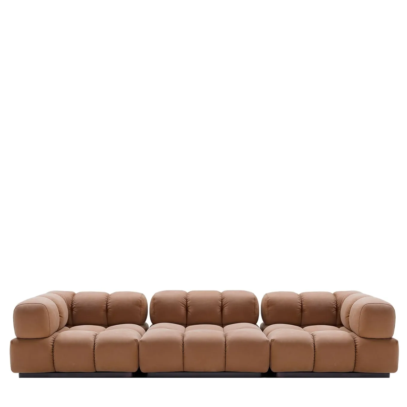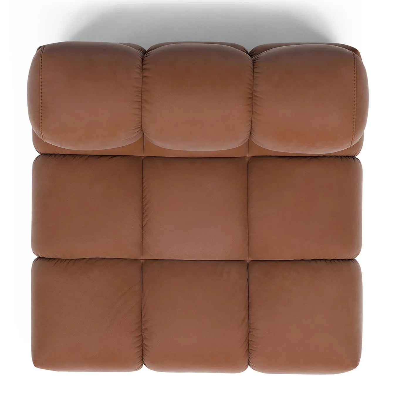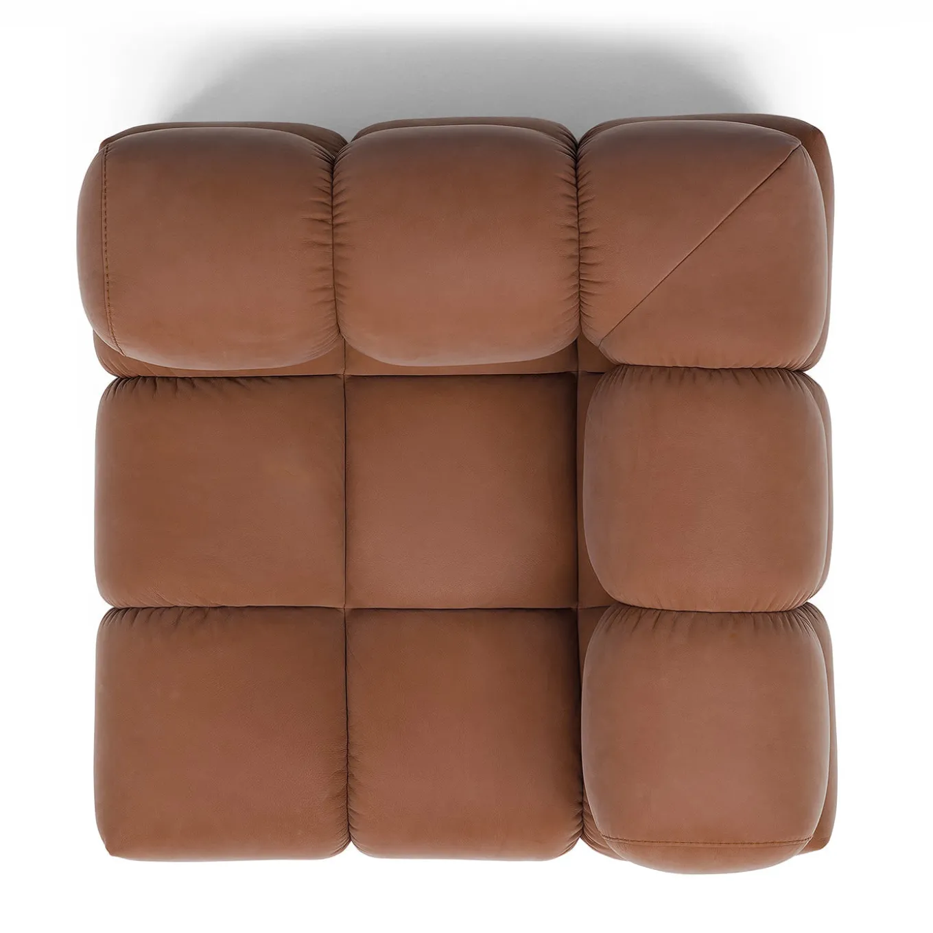 A sofa seemingly dancing to a pop rhythm, this modular design with a wooden base and brown leather cover will uplift the look of any modern home with its bold quilted design tracing plump cubic volumes. The rich inner padding in memory foam gives it its distinctive fluffiness, which can be appreciated both with eyes and touch. Please consult the Concierge for available customization options.